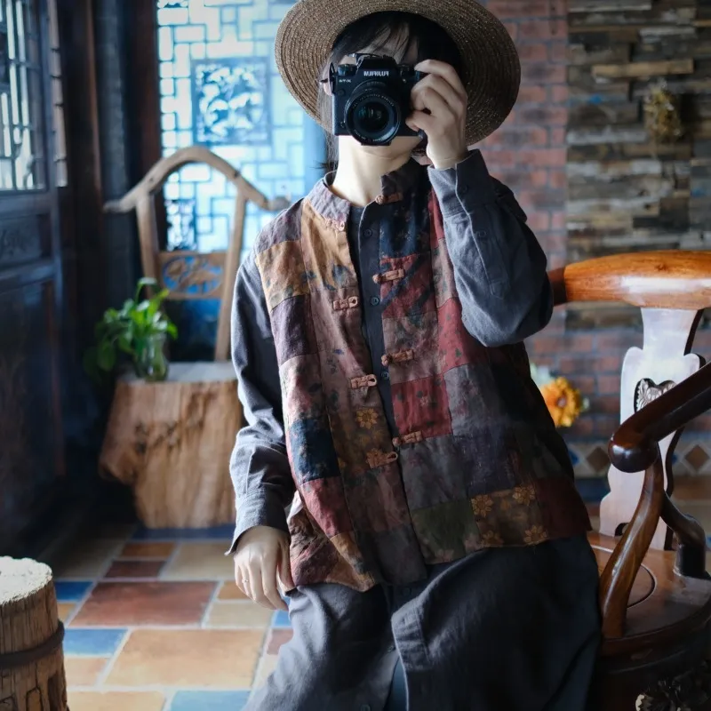 衣都精品- 2023新款復古乞丐風麻料拼布對襟外套