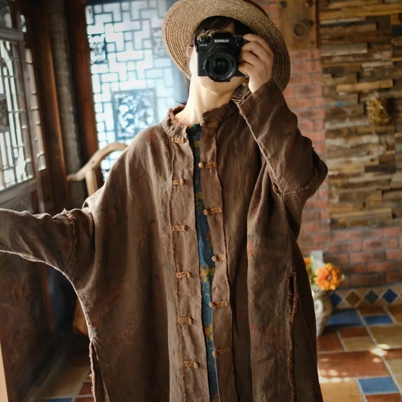 衣都精品- 2023新款復古乞丐風麻料拼布對襟外套