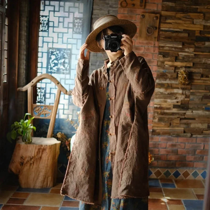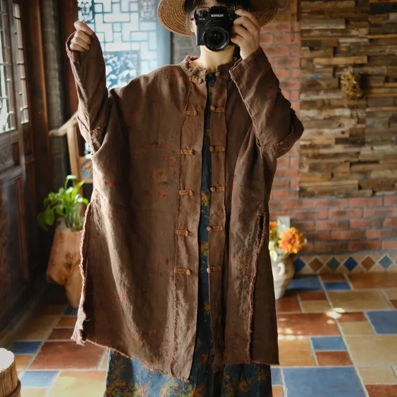 衣都精品- 2023新款復古乞丐風麻料拼布對襟有內裡外套