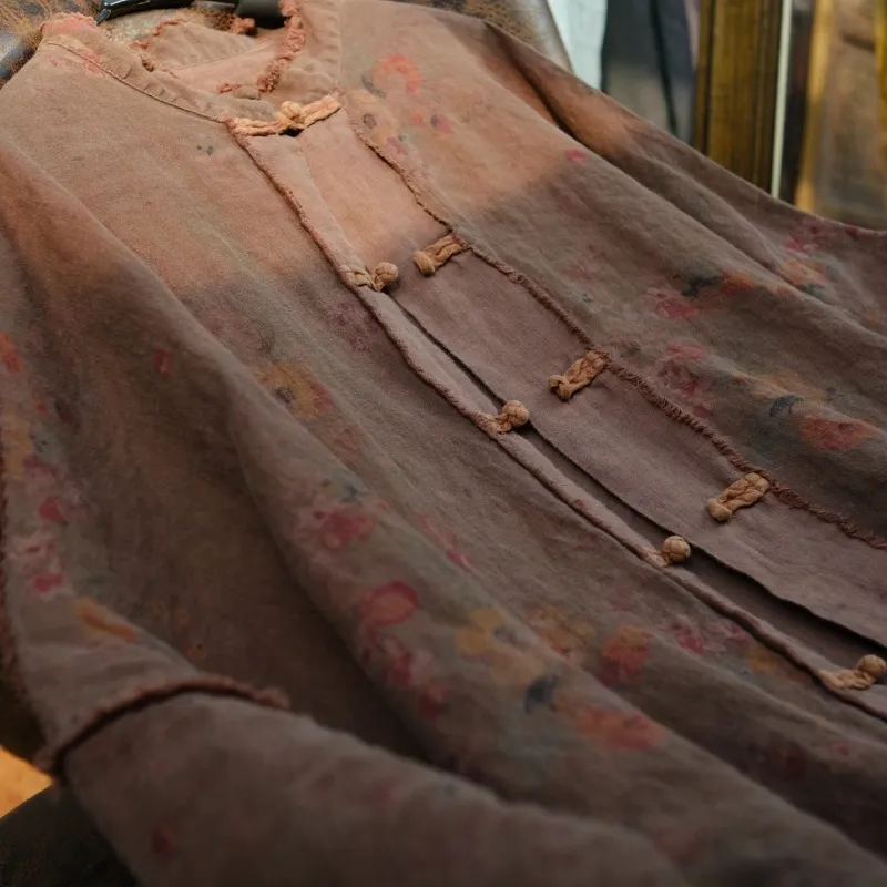 衣都精品- 2023新款復古舊感雙層棉紗寬鬆盤扣連衣裙