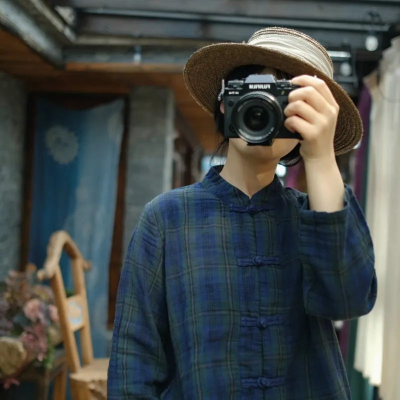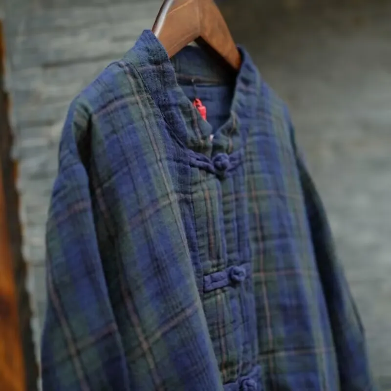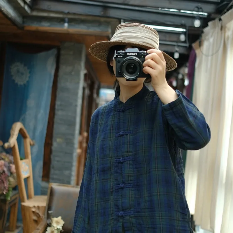 衣都精品- 2023新款復古雙層棉紗寬鬆盤扣斜襟連衣裙