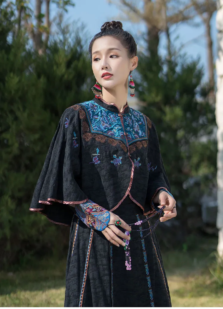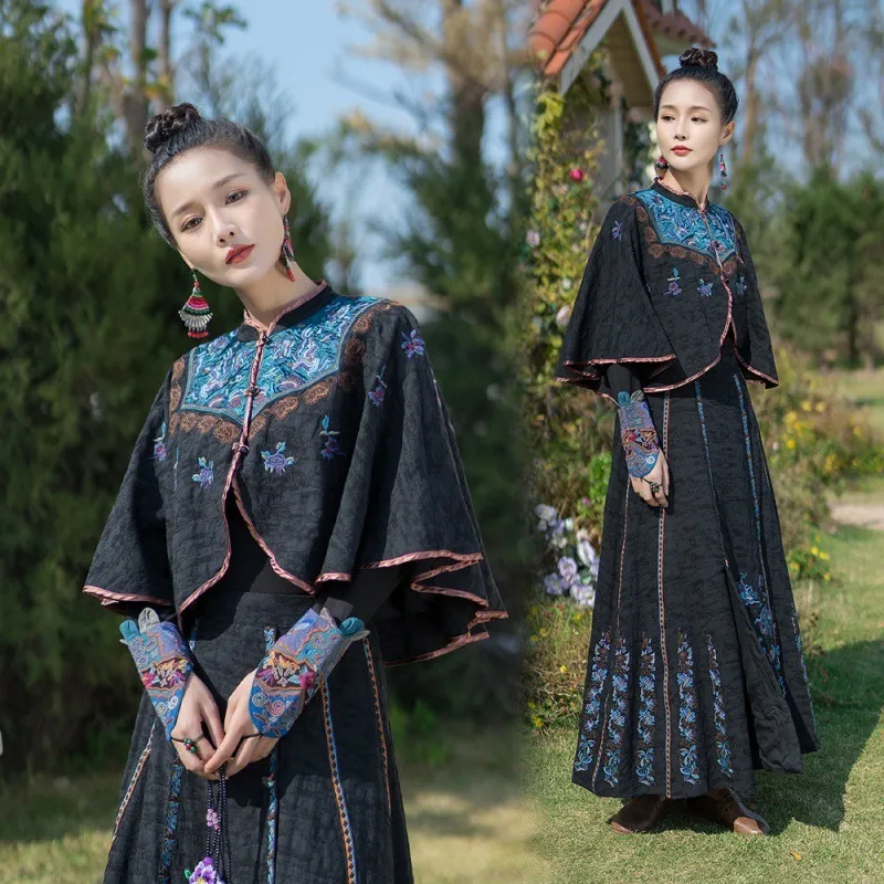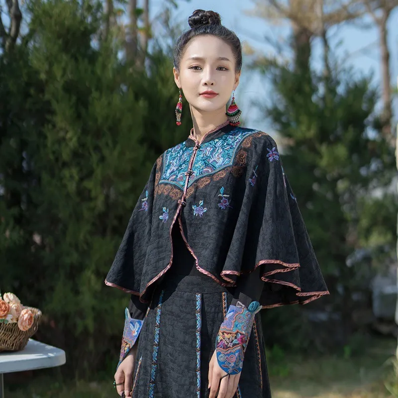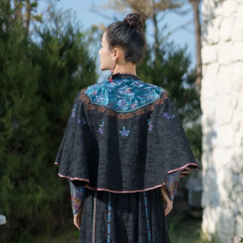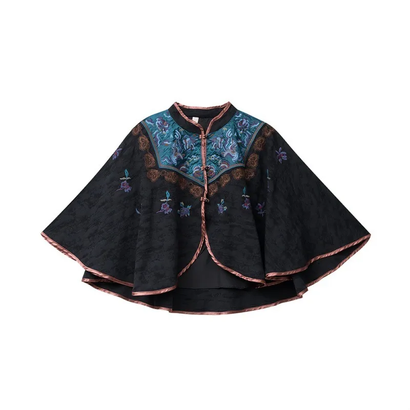 衣都精品- 2023新款民族風繡花盤扣短款斗篷外套