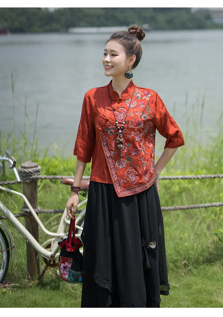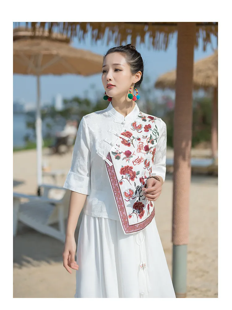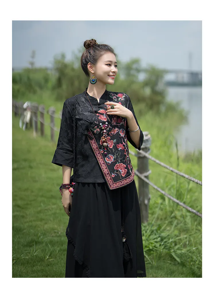 衣都精品- 2023新款民族風重工刺繡繫帶五分袖上衣
