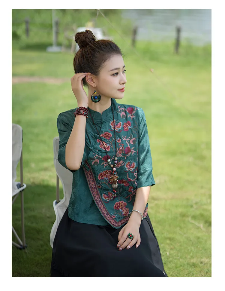 衣都精品- 2023新款民族風盤扣刺繡修身短上衣