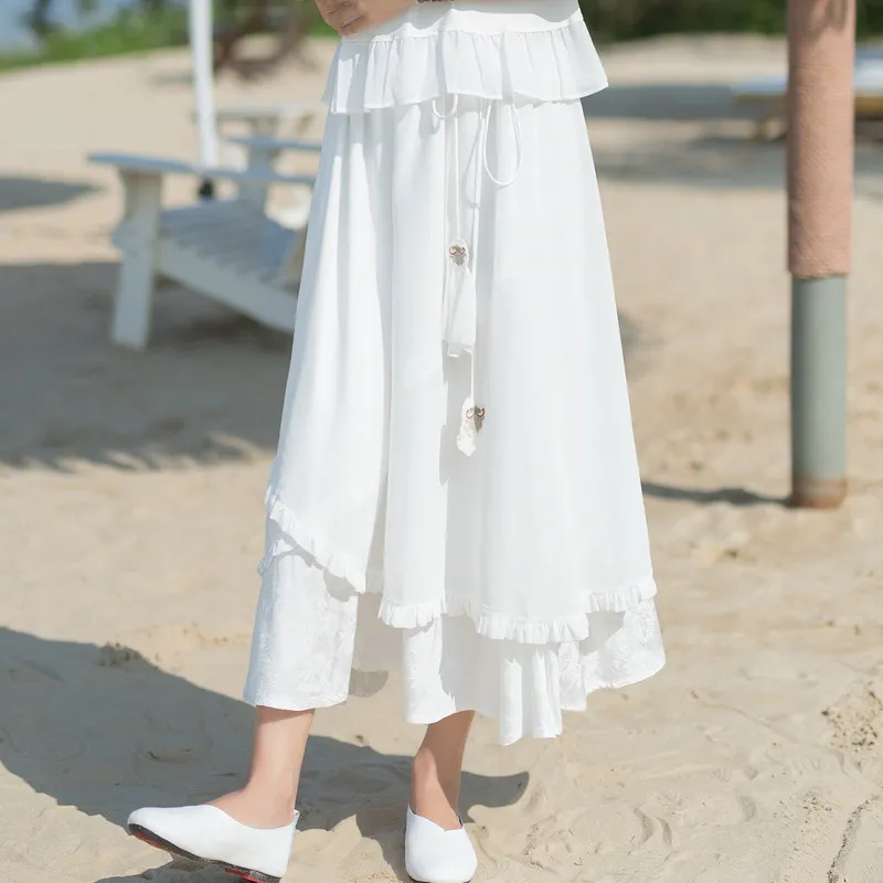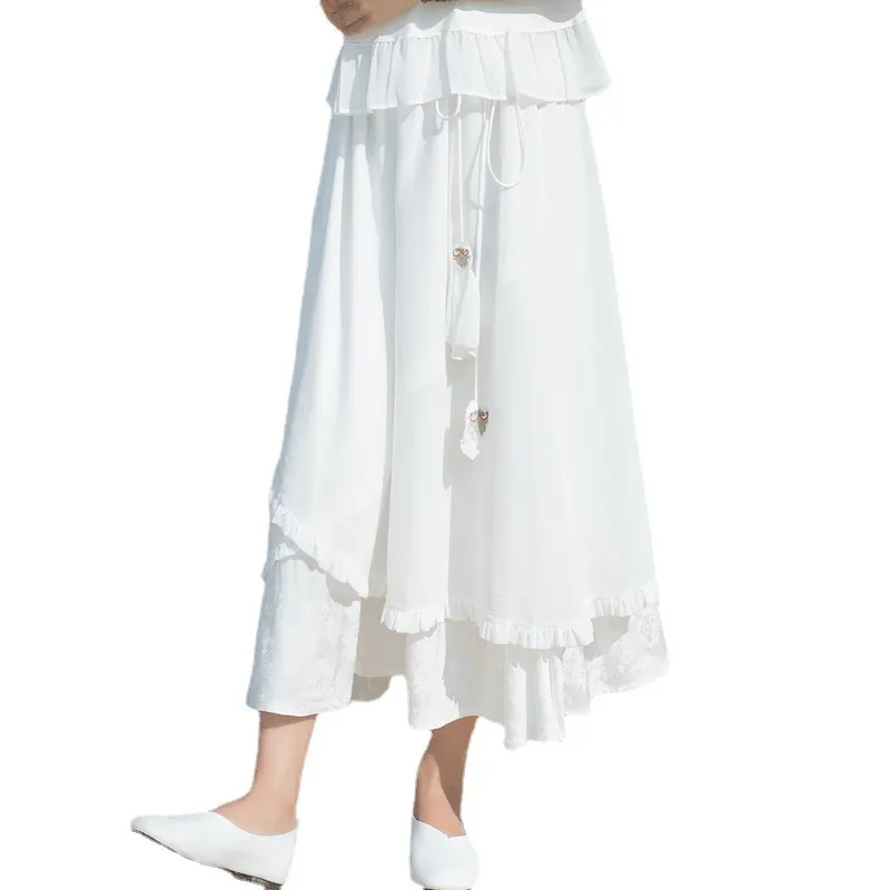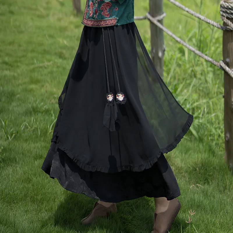 衣都精品- 2023新款民族風提花緞面流蘇飄帶半身裙