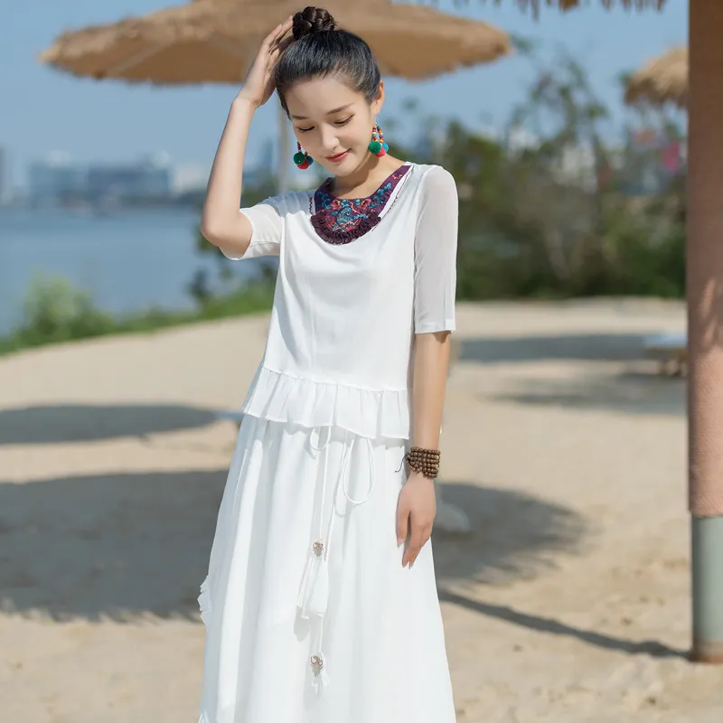 衣都精品- 2023新款民族風重工刺繡繫帶五分袖上衣