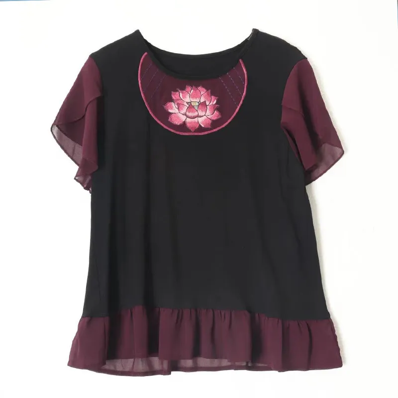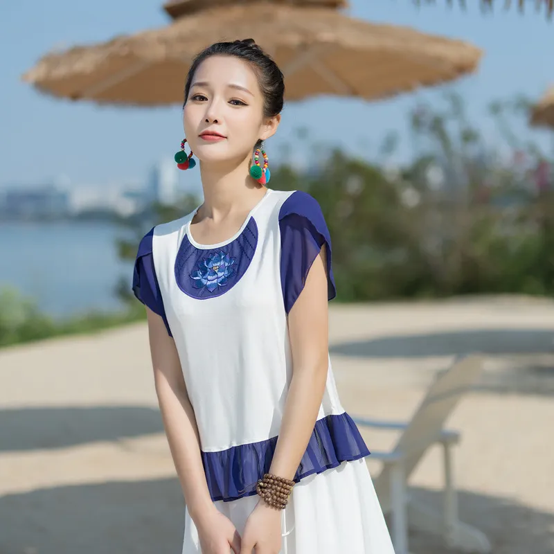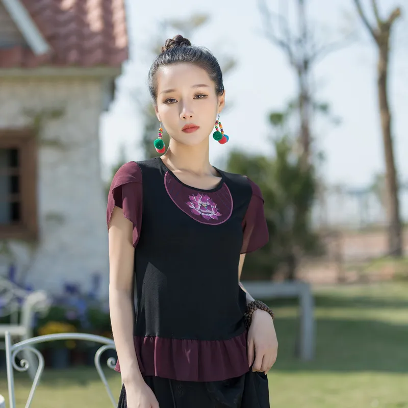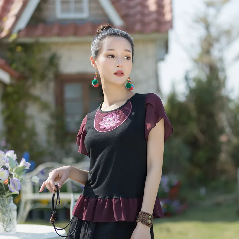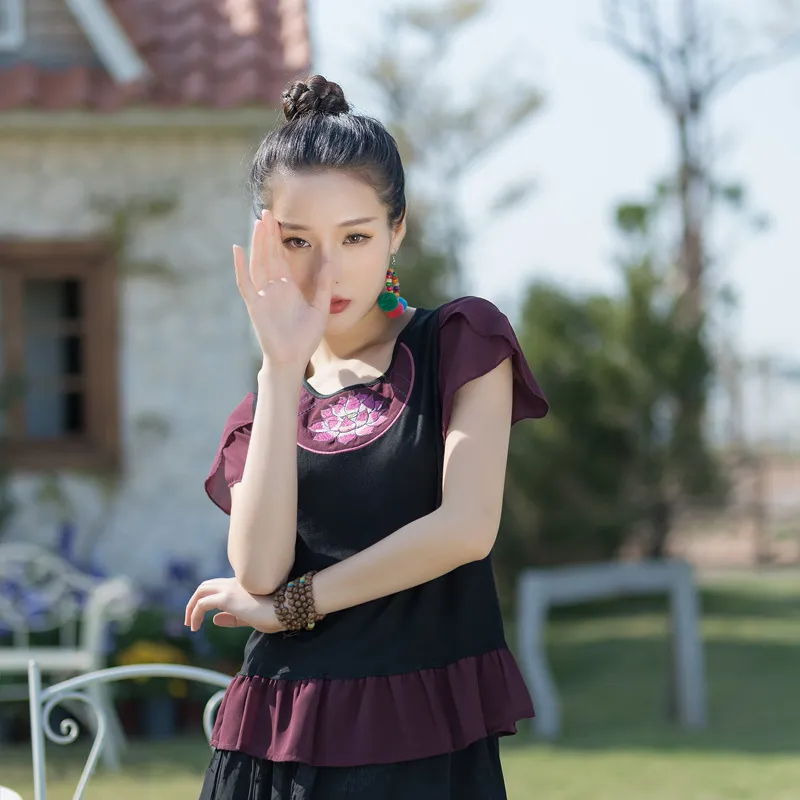 衣都精品- 2023新款民族風重工貼佈繡花拼接上衣