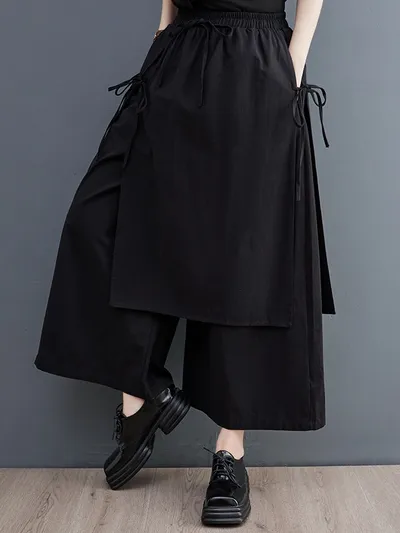衣都精品- 2023新款百搭休閒純色不規則綁帶闊腿褲