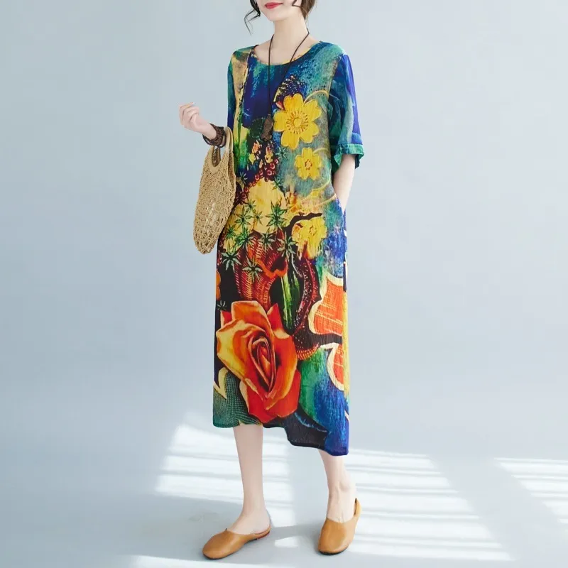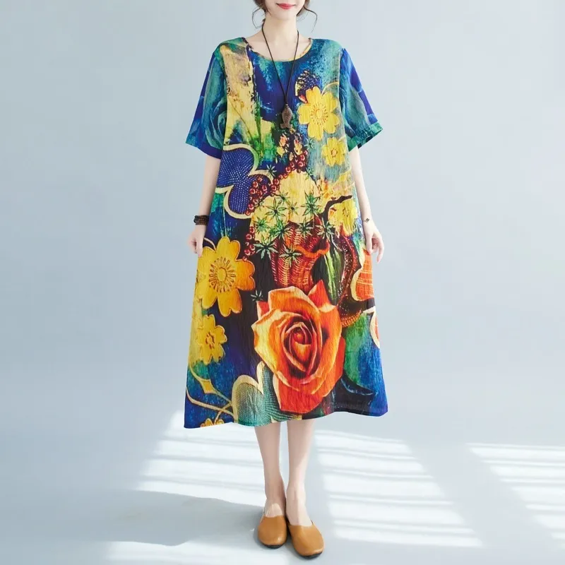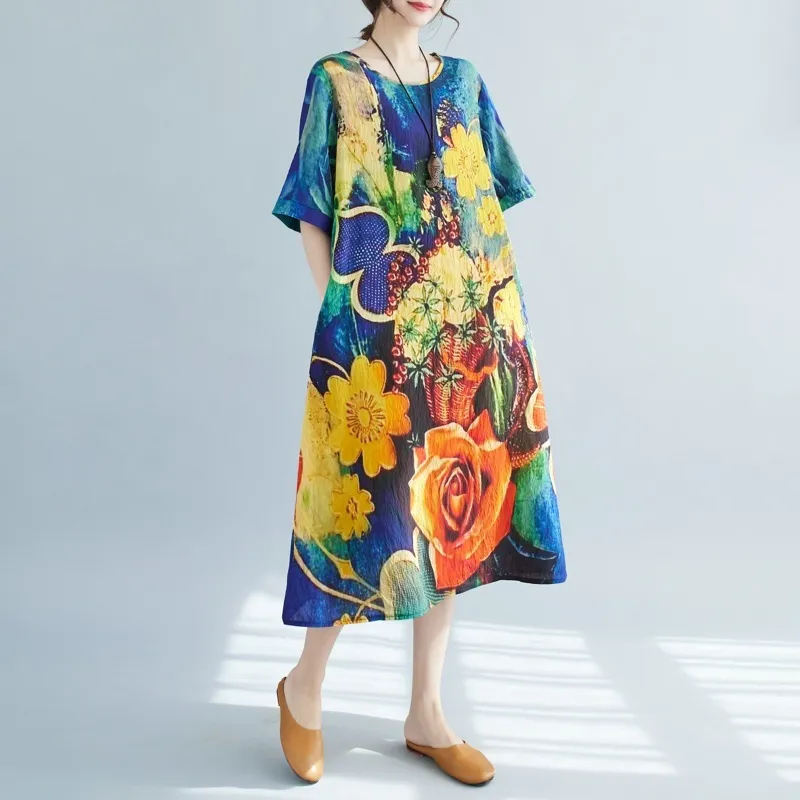 衣都精品- 2023新款民族風定位花寬鬆顯瘦連衣裙