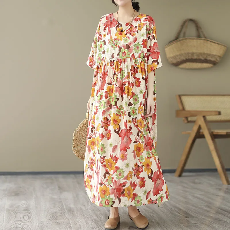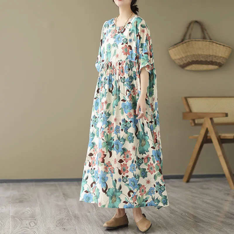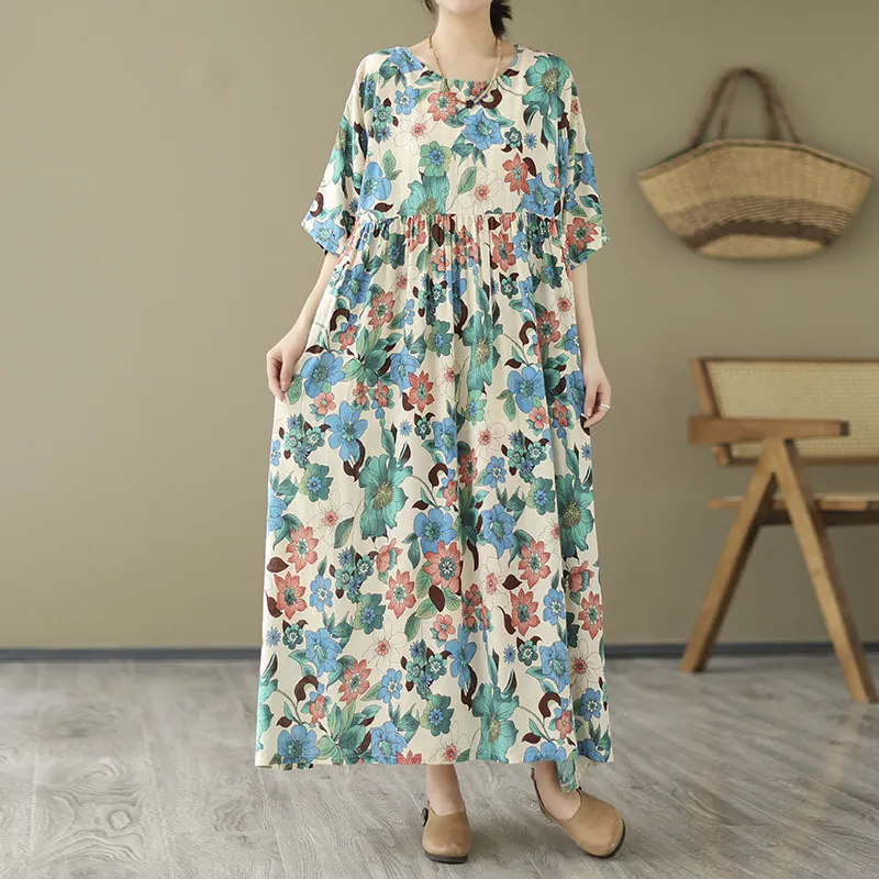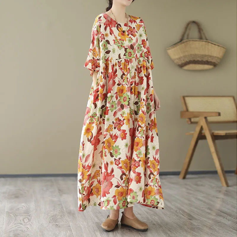 衣都精品- 2023新款復古寬鬆印花遮肚顯瘦連衣裙