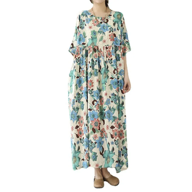 衣都精品- 2023新款民族風定位花寬鬆顯瘦連衣裙