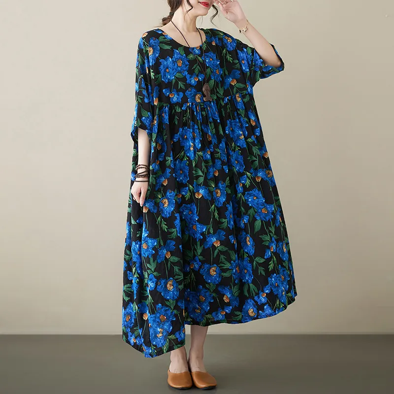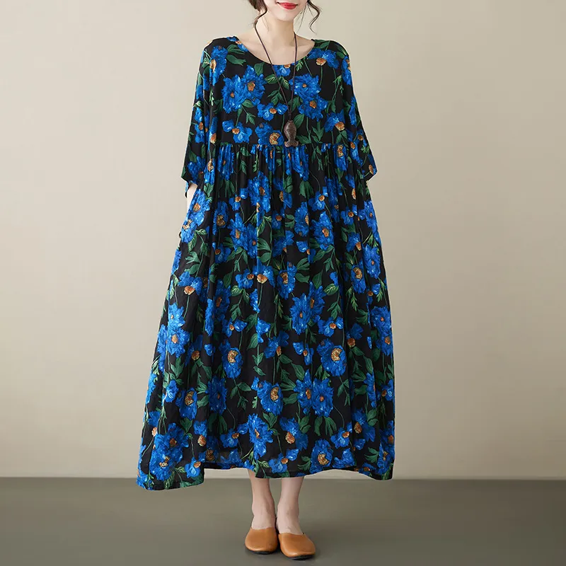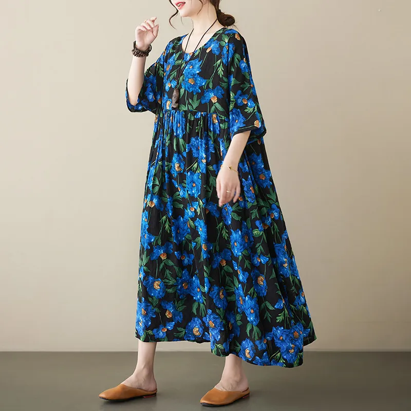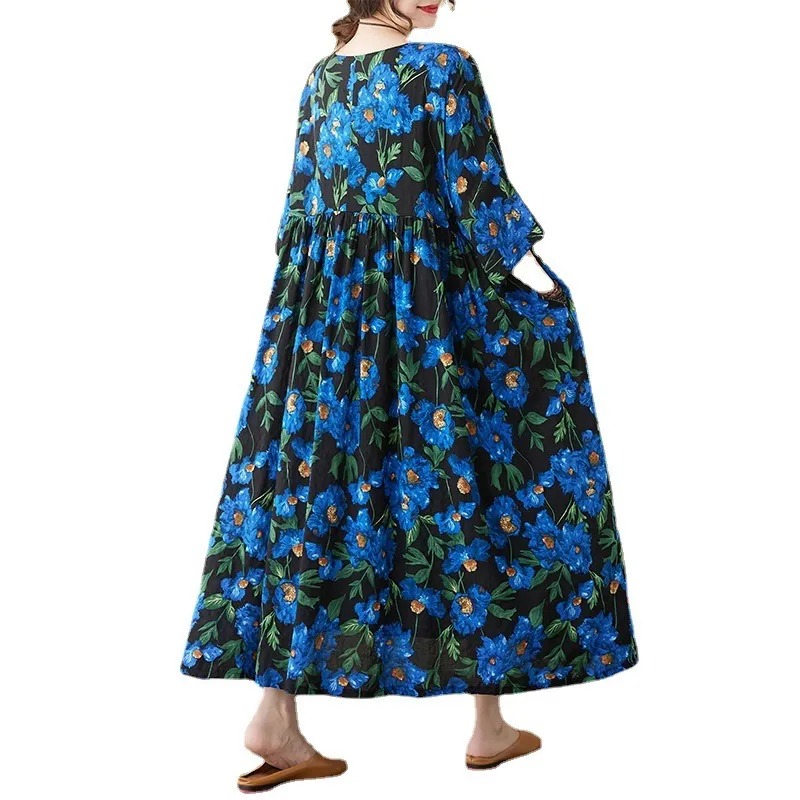 衣都精品- 2023新款復古寬鬆印花遮肚顯瘦連衣裙