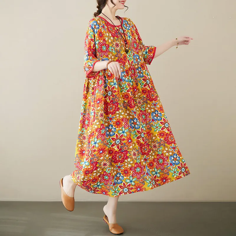 衣都精品- 2023新款文藝復古減齡印花連衣裙