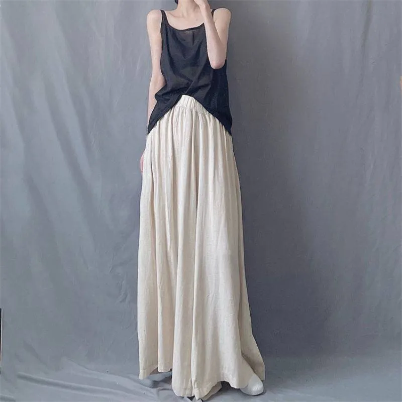 衣都精品- 2023新款復古顯瘦寬鬆鬆緊腰休閒闊腿褲