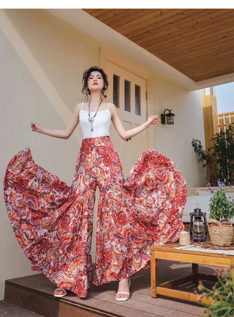 衣都精品- 2023新款復古度假風V領印花連衣裙