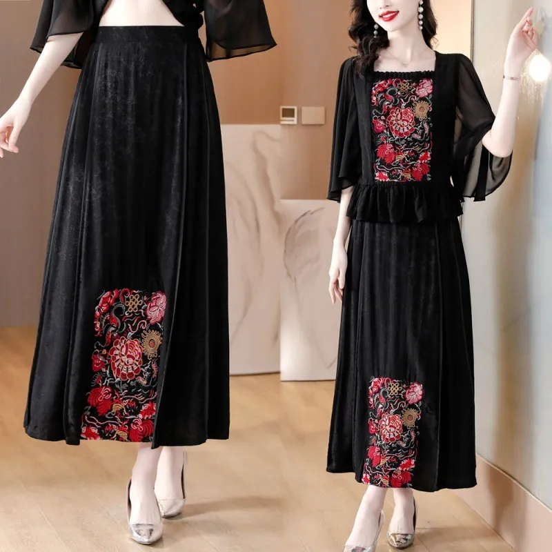 衣都精品- 2023新款民族風復古馬面刺繡半身裙
