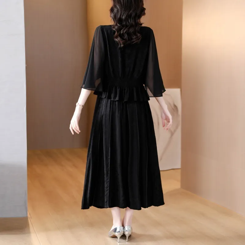 衣都精品- 2023新款加大圓領印花短袖遮肚連衣裙