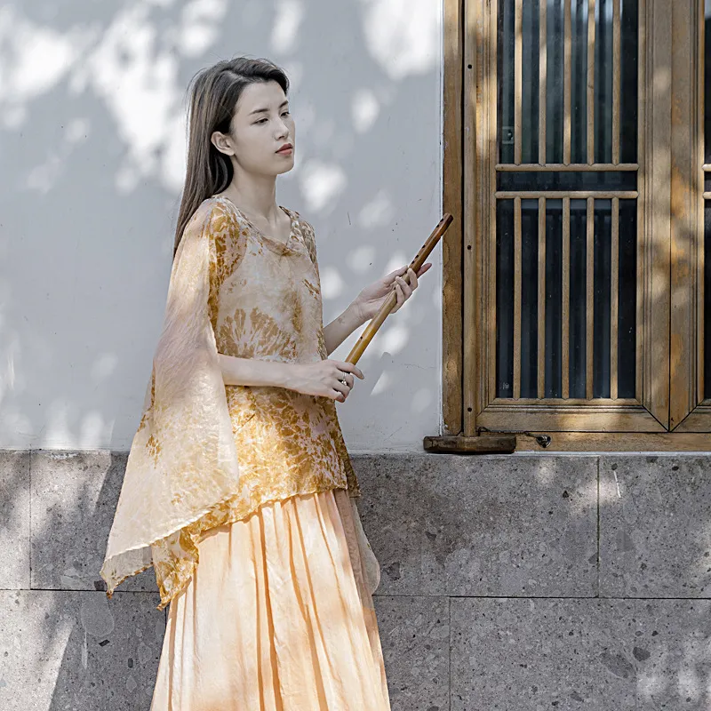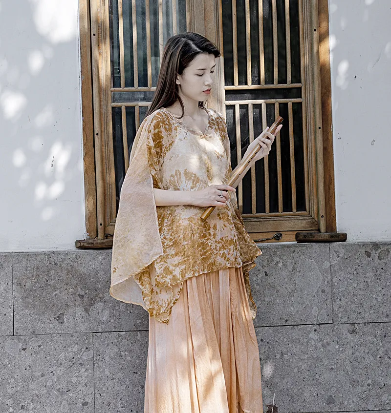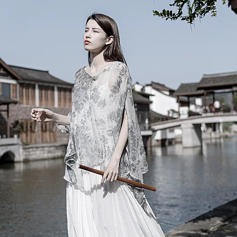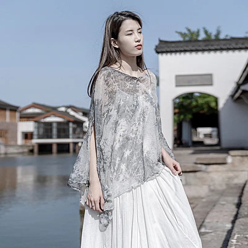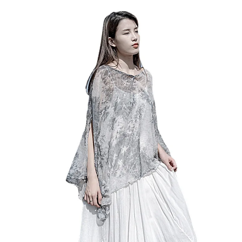 衣都精品- 2023新款絲麻印花寬鬆大版開叉防曬衫