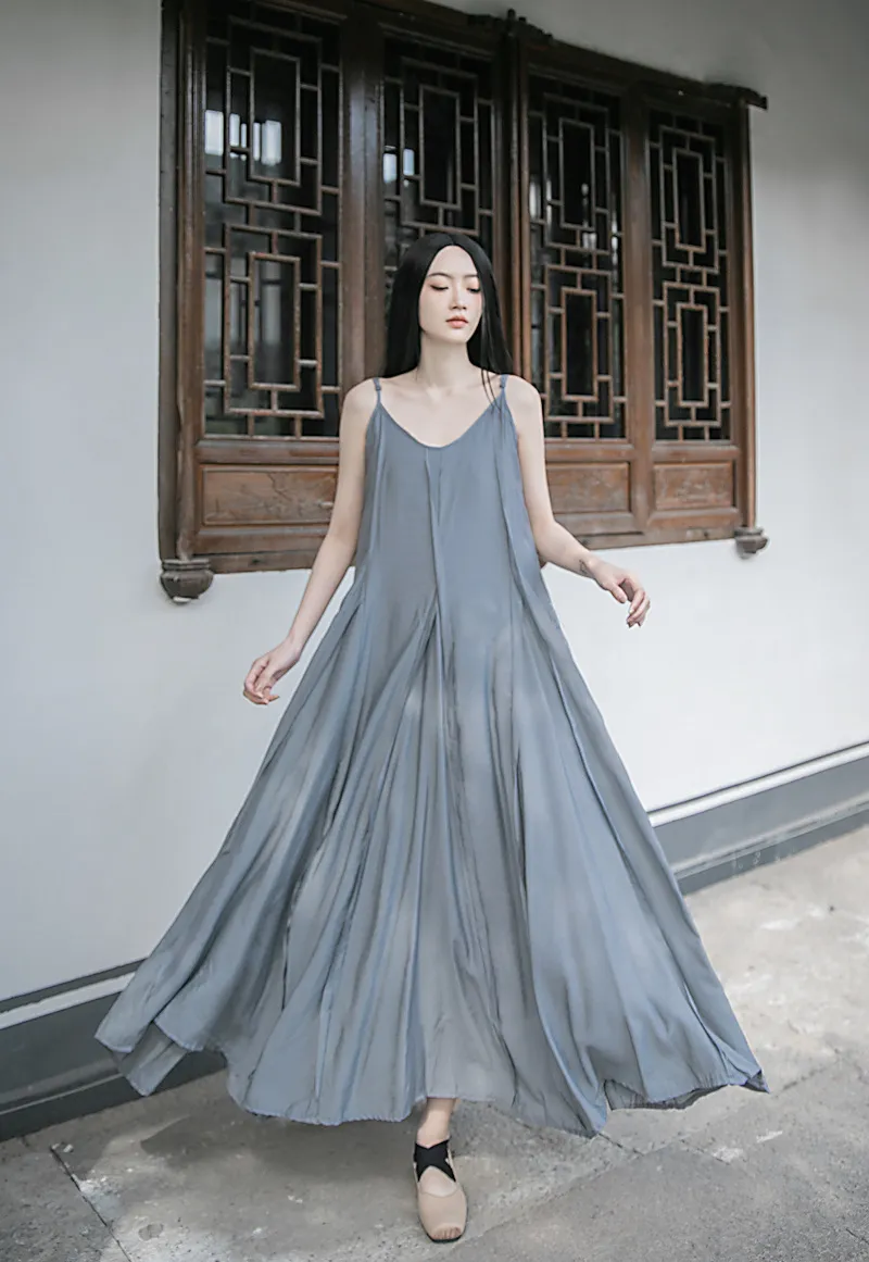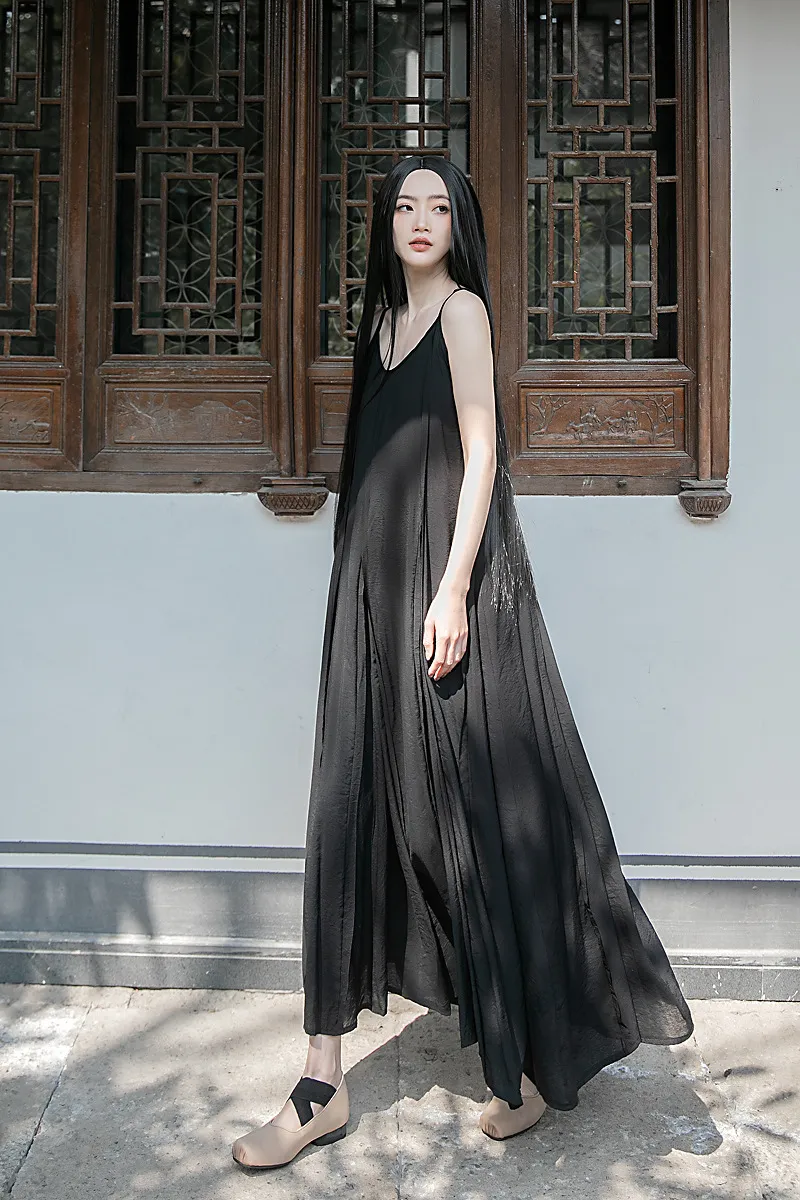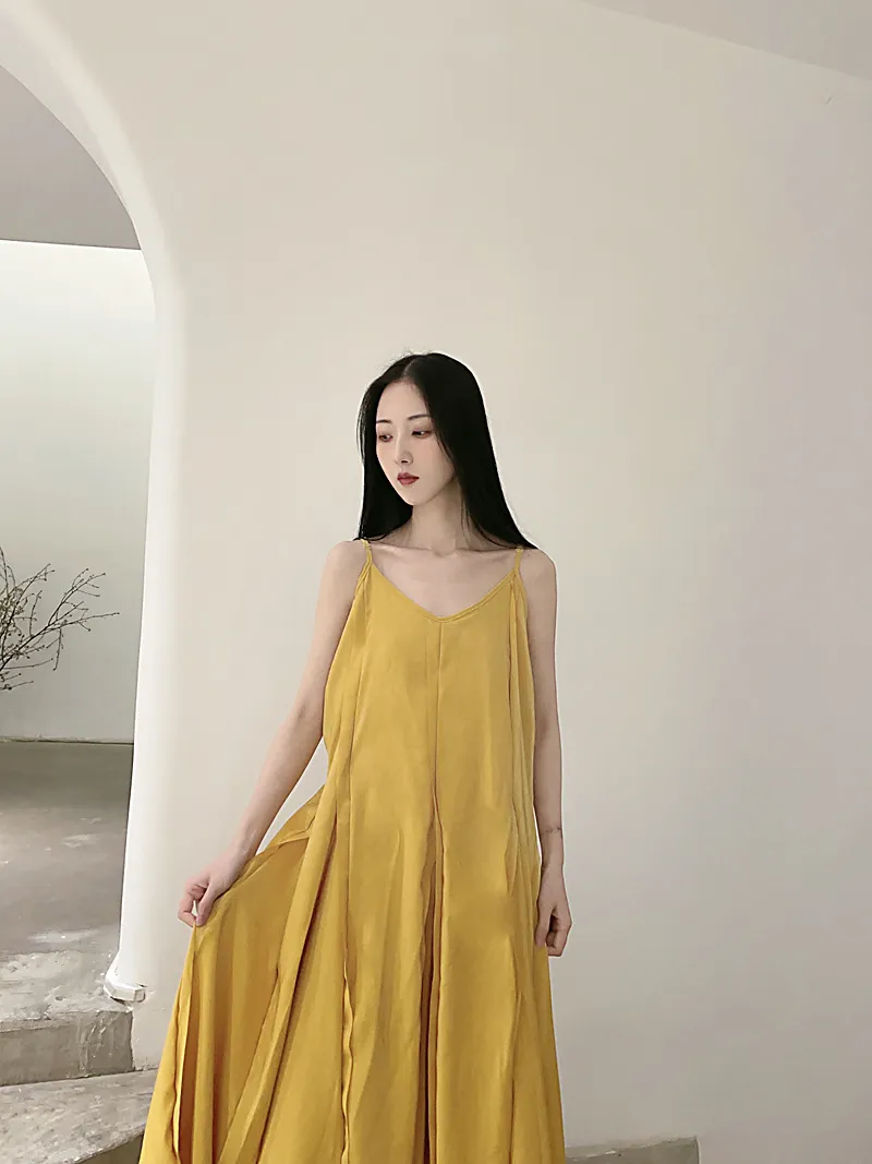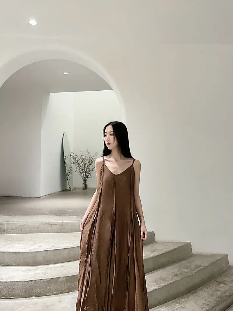 衣都精品- 2023新款大擺雙層柳葉拼接吊帶裙