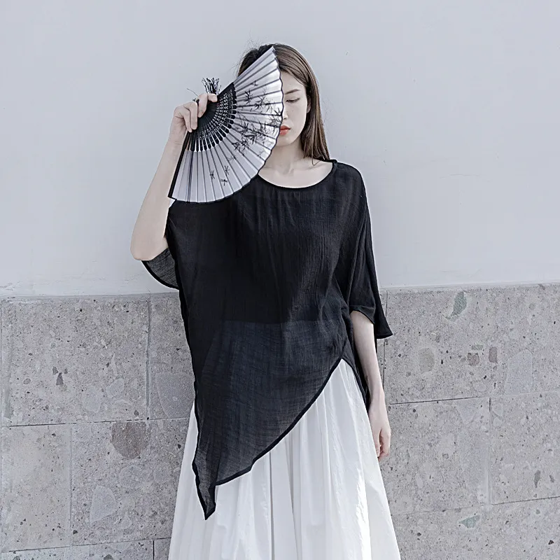 衣都精品- 2023新款不規則開叉寬鬆天絲防曬罩衫