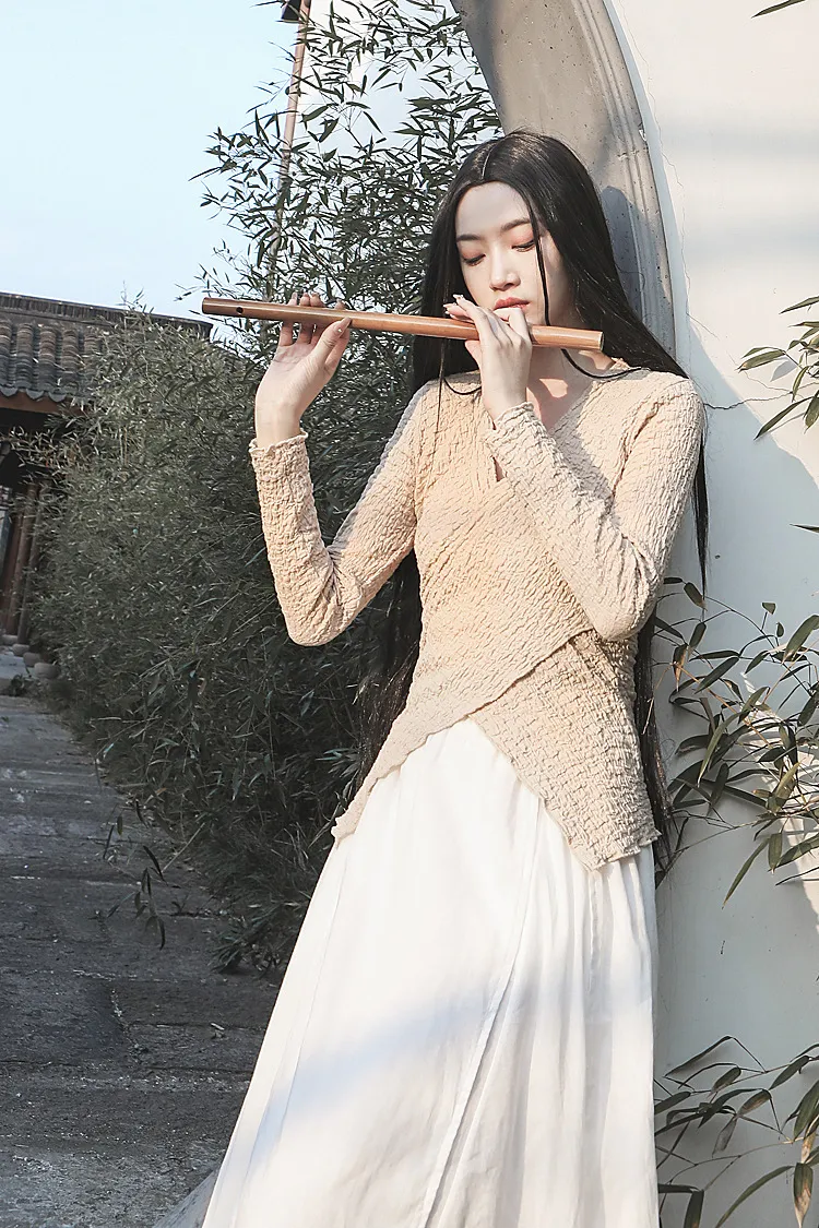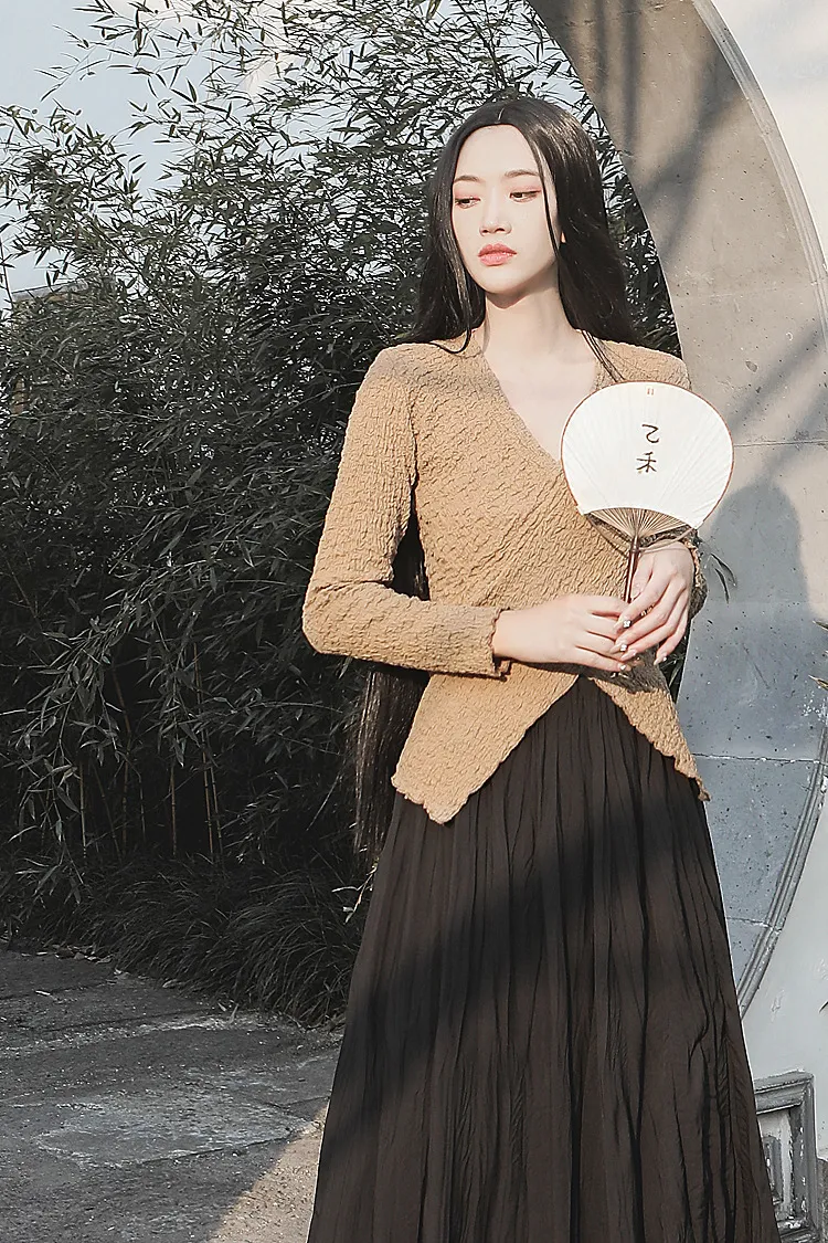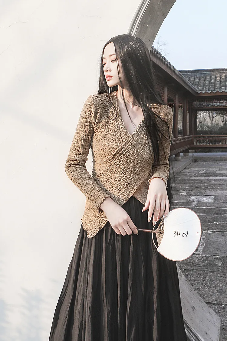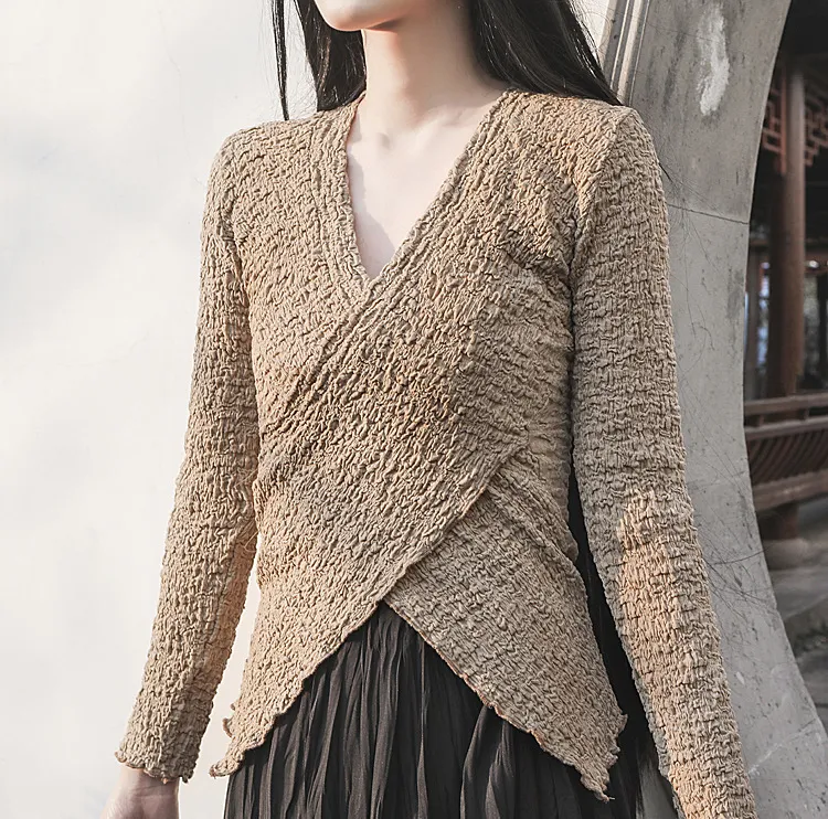 衣都精品- 2023新款清冷氛圍感泡泡棉修身交叉上衣