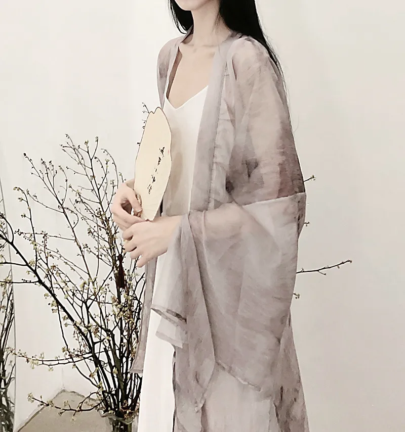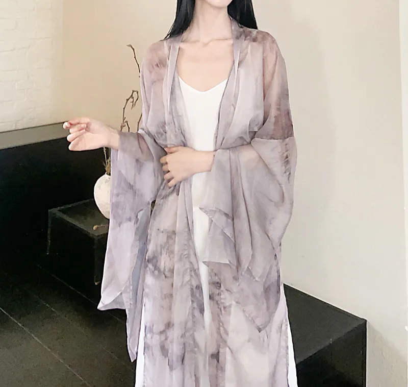 衣都精品- 2023新款水墨畫寬鬆闊袖雪紡飄逸輕薄開衫