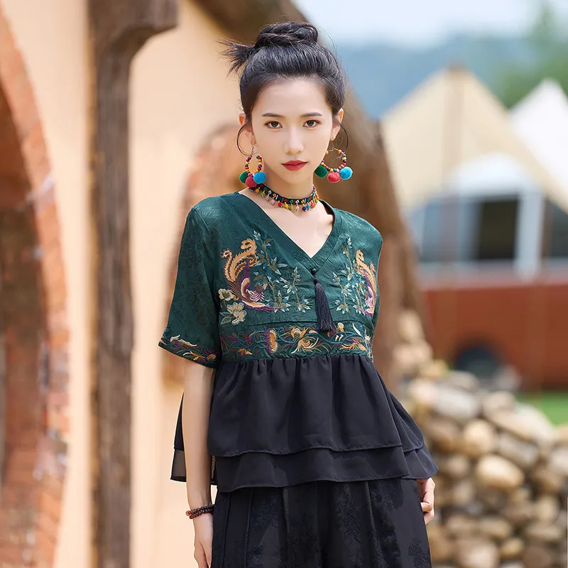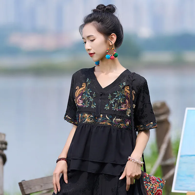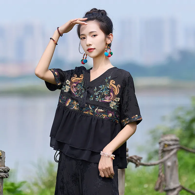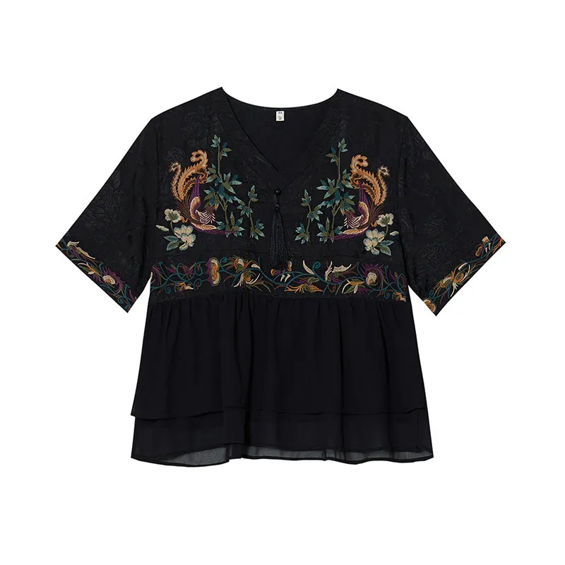 衣都精品- 2023新款民族風刺繡提花短袖上衣