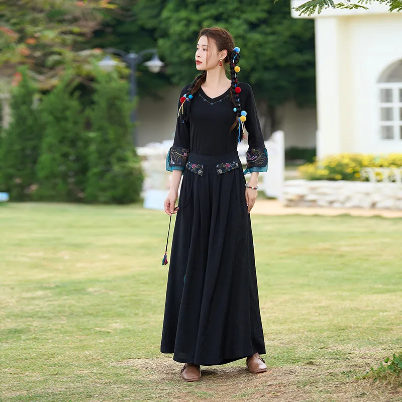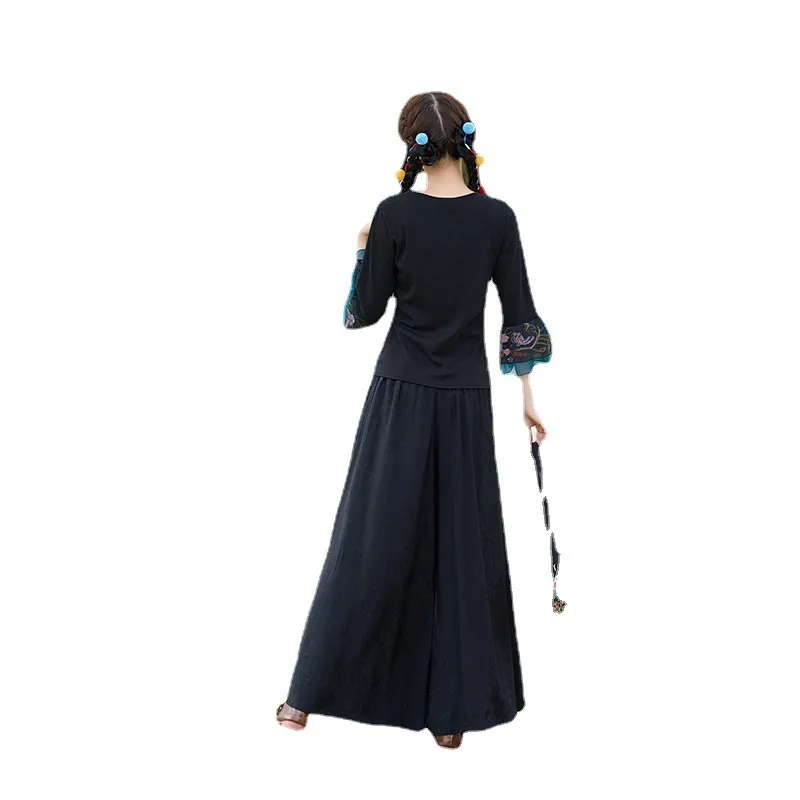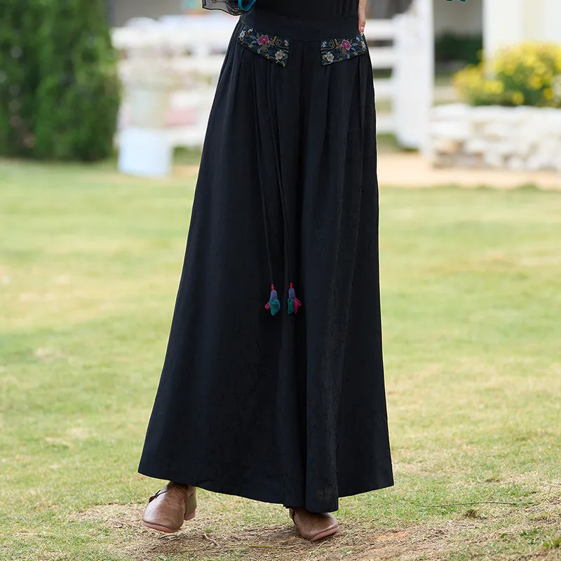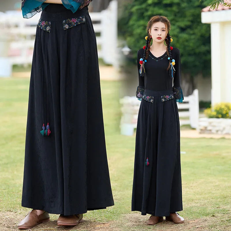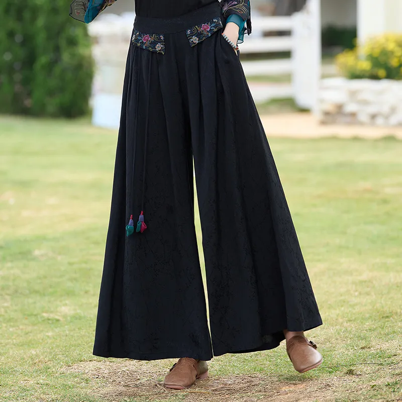 衣都精品- 2023新款民族風提花緞面繡花闊腿褲