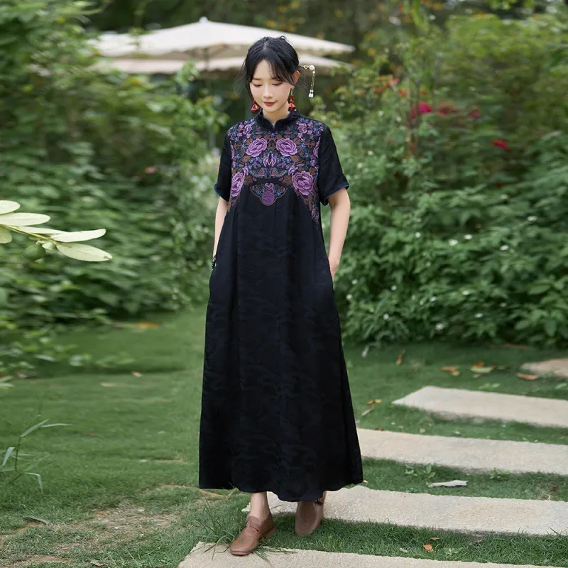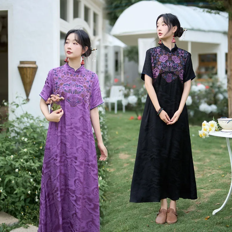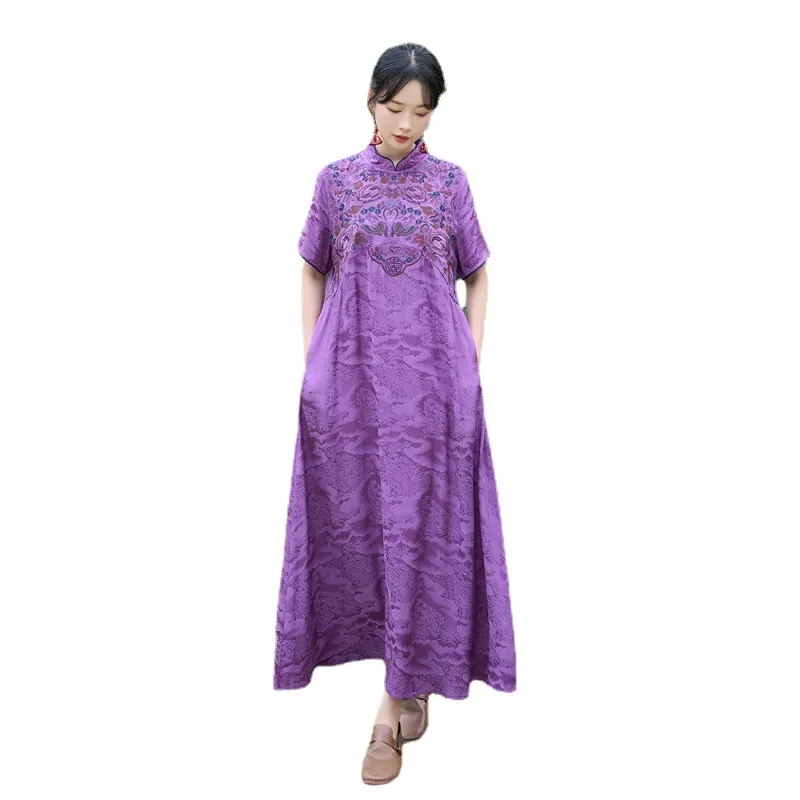 衣都精品- 2023新款民族風復古改良刺繡旗袍連衣裙