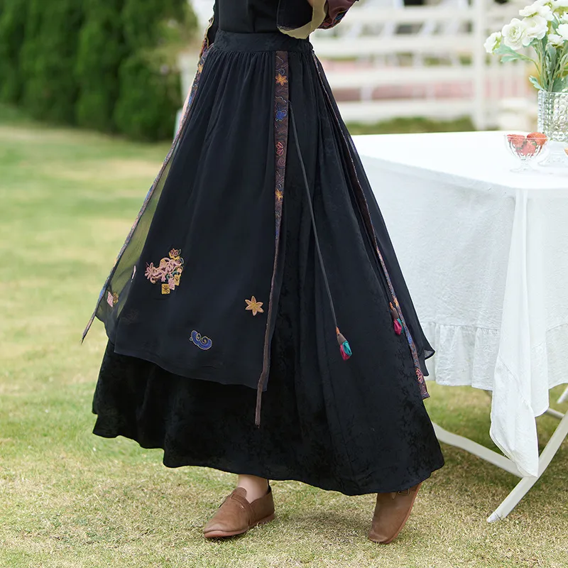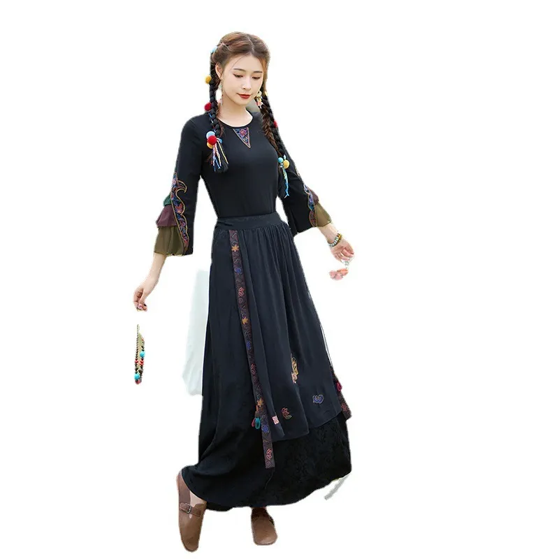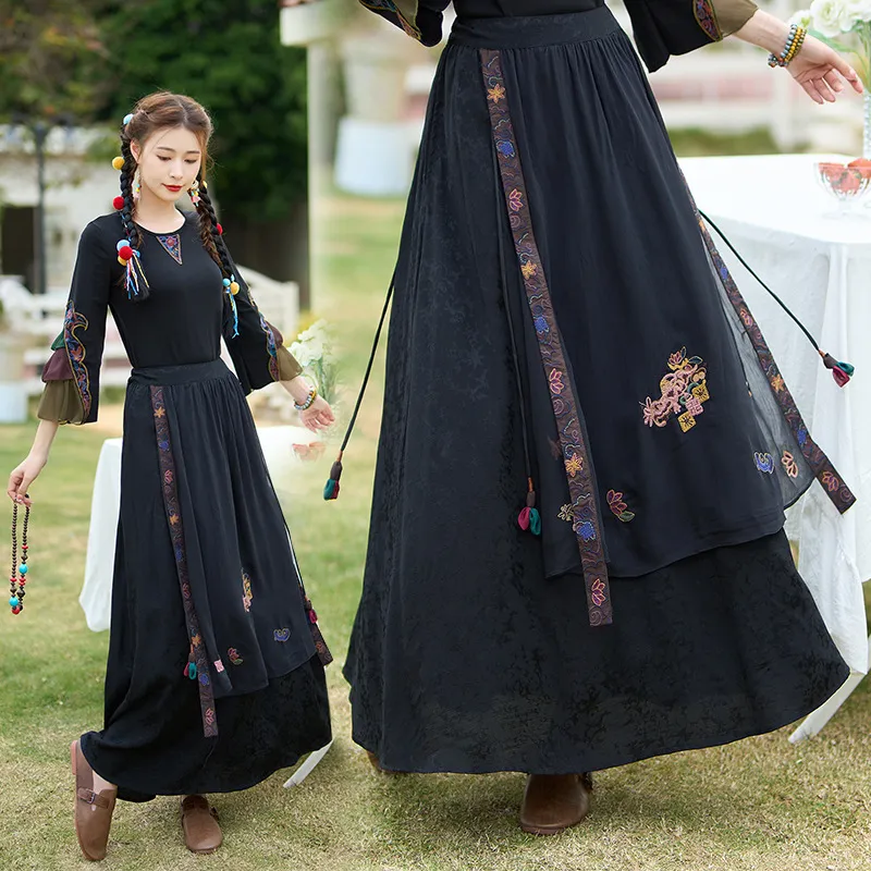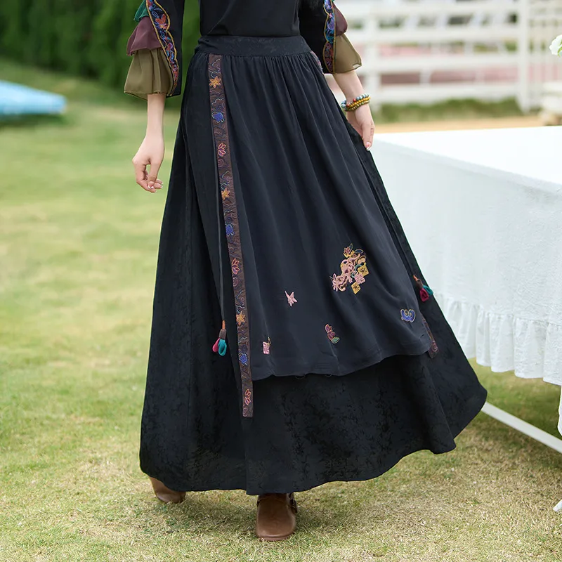 衣都精品- 2023新款民族風顯瘦鬆緊腰繡花半身裙