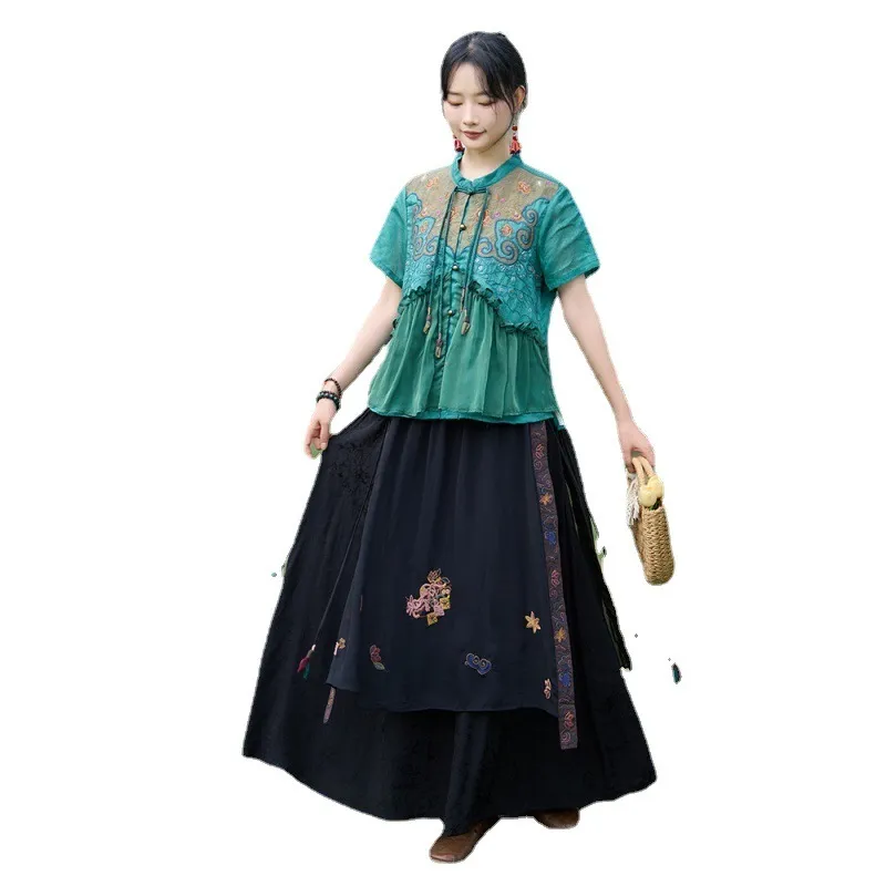 衣都精品- 2023新款民族風顯瘦鬆緊腰繡花半身裙