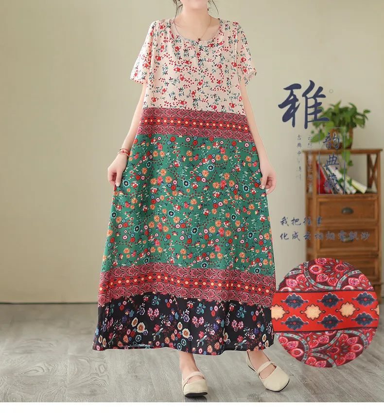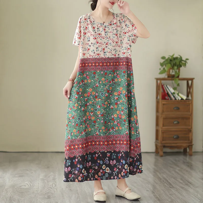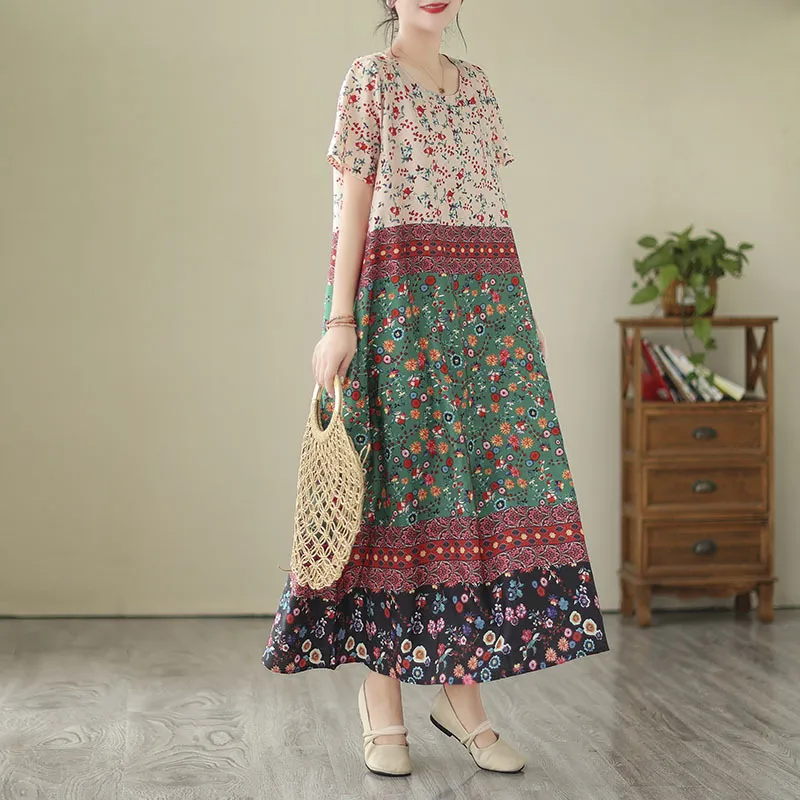 衣都精品- 2023新款文藝大碼寬鬆碎花連衣裙