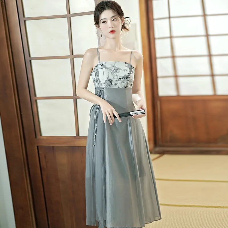 衣都精品- 2023新款民族風復古絕美氣質吊帶連衣裙
