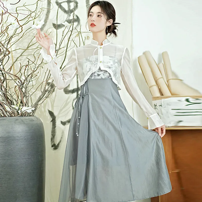 衣都精品- 2023新款復古風仙氣開衫外搭+吊帶連衣裙兩件套裝