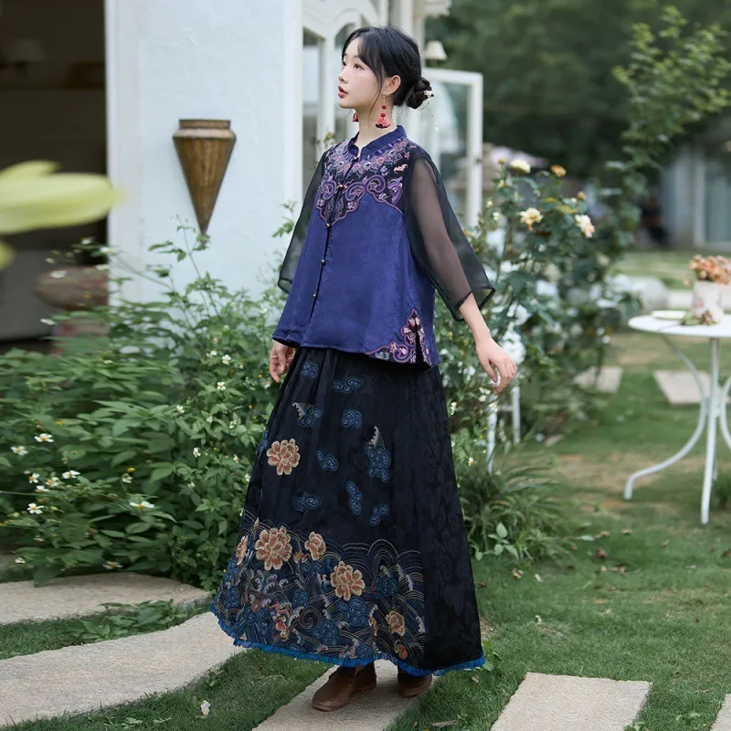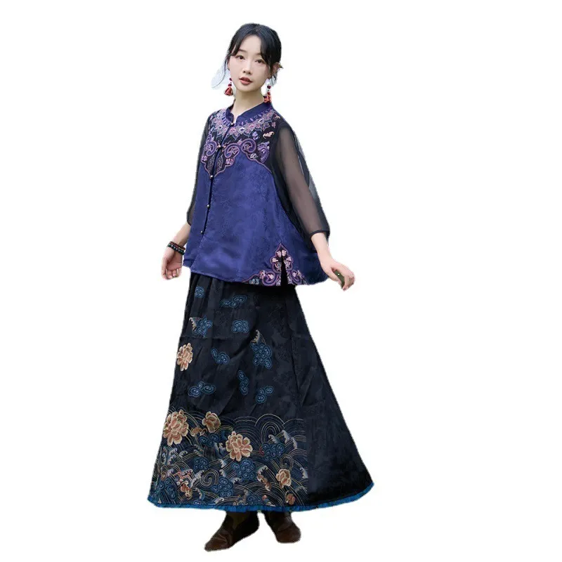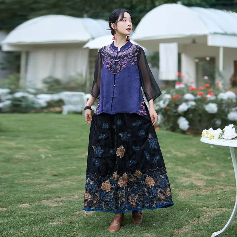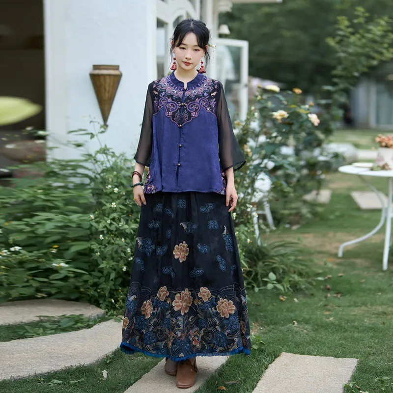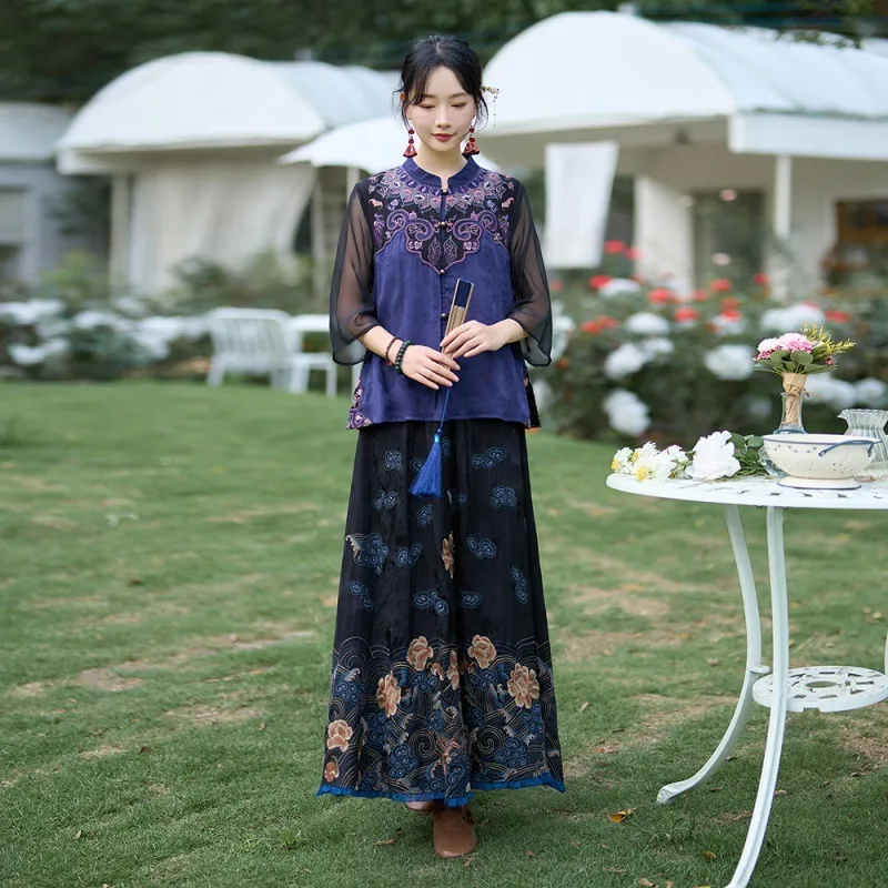 衣都精品- 2023新款禪意風文藝七分袖茶服上衣+半身裙套裝