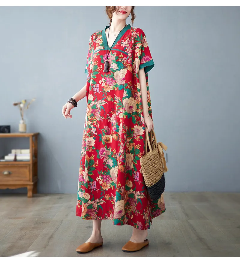 衣都精品- 2023新款度假風V領大碼寬鬆連衣裙