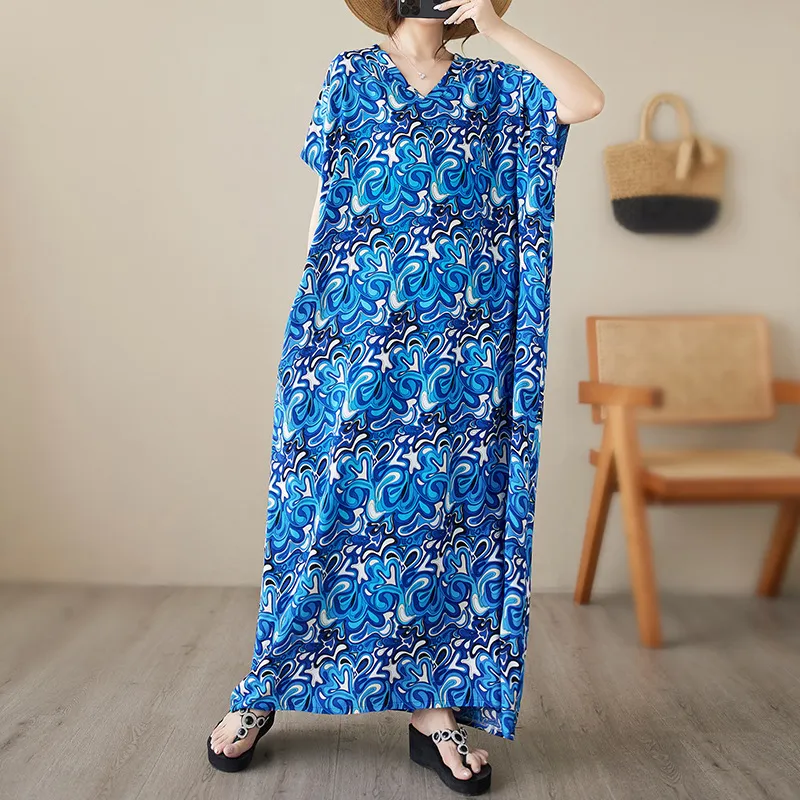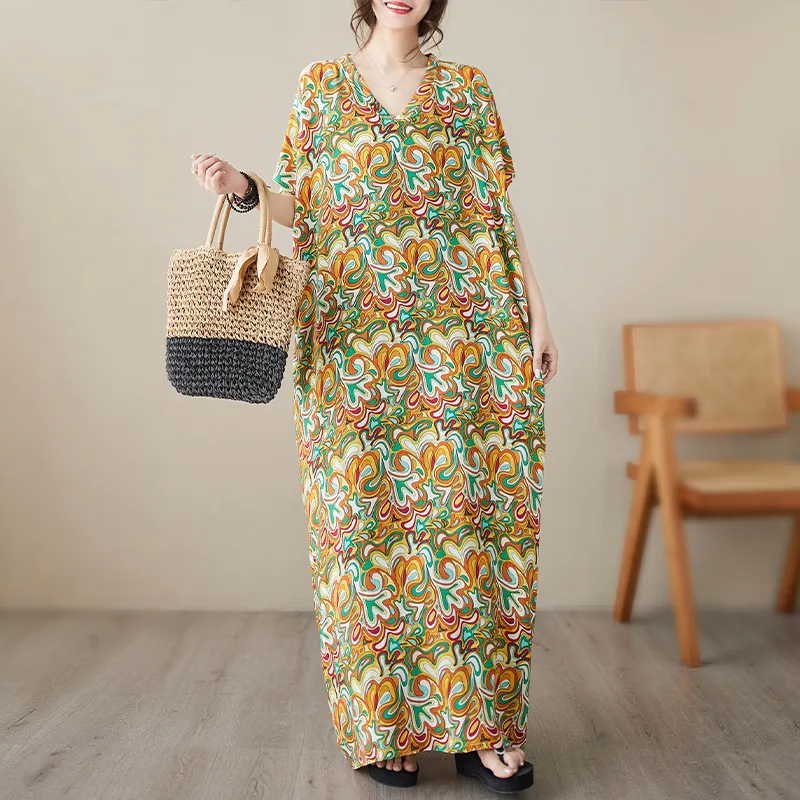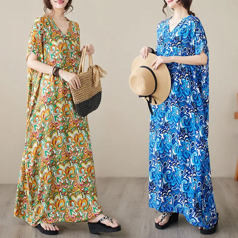 衣都精品- 2023新款度假風V領大碼寬鬆連衣裙