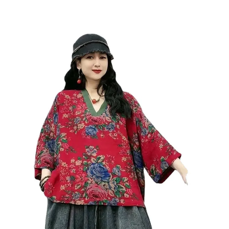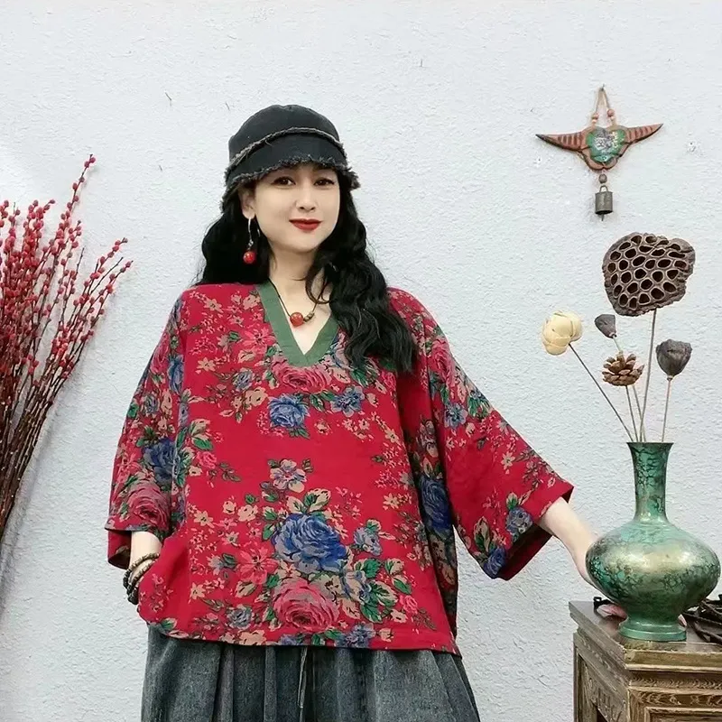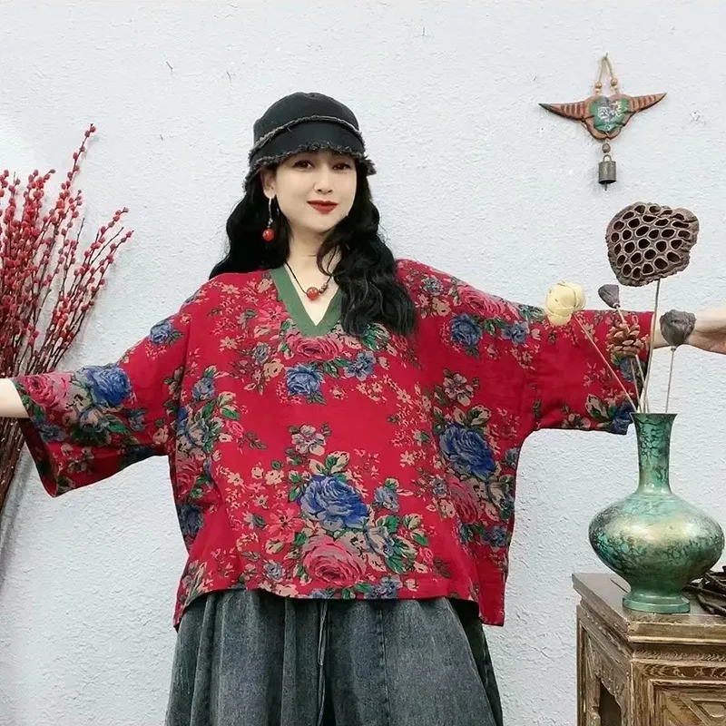 衣都精品- 2023新款復古東北大花撞色拼接上衣