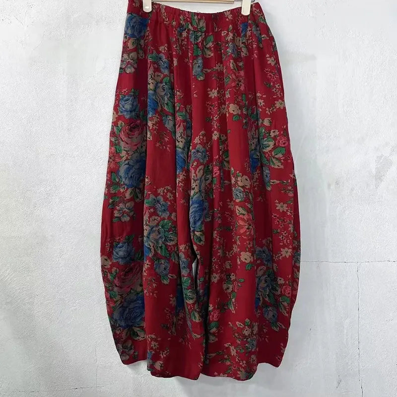 衣都精品- 2023新款復古東北大花雙層紗鬆緊腰休閒褲