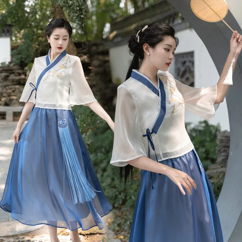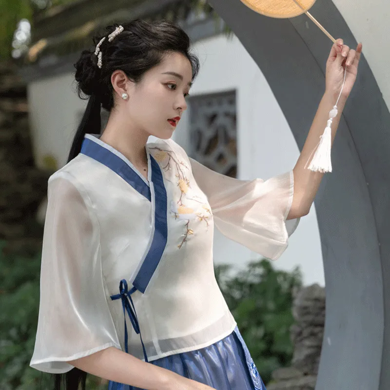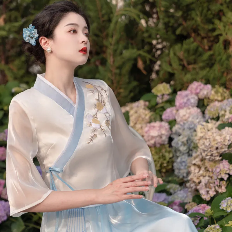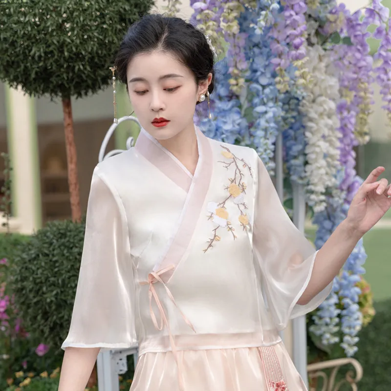 衣都精品- 2023新款民族風刺繡V領改良漢服上衣
