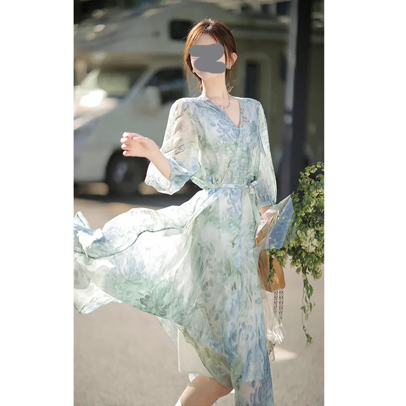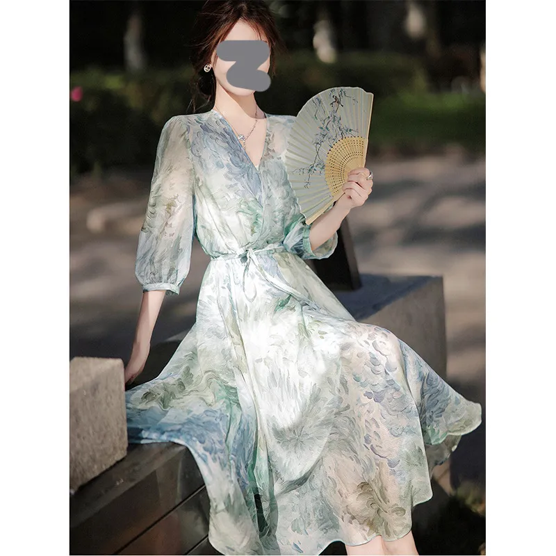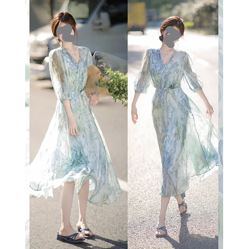 衣都精品- 2023新款休閒顯瘦印花小清新連衣裙