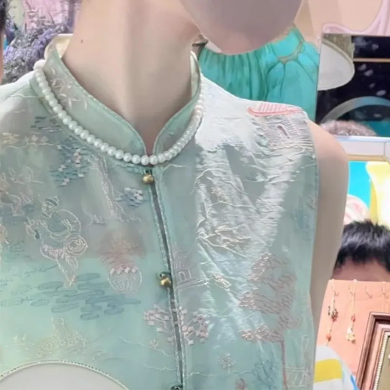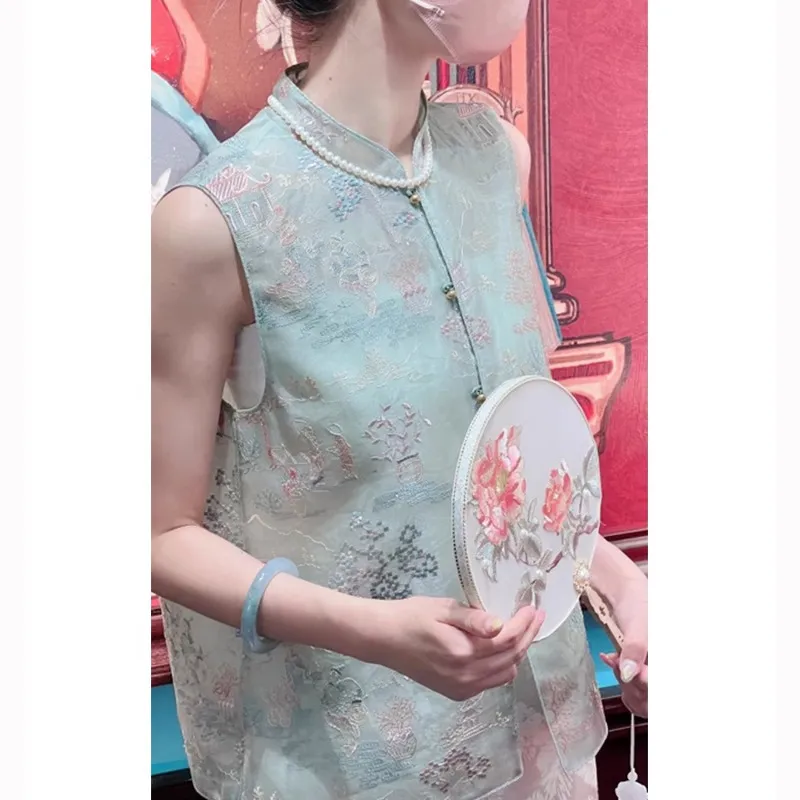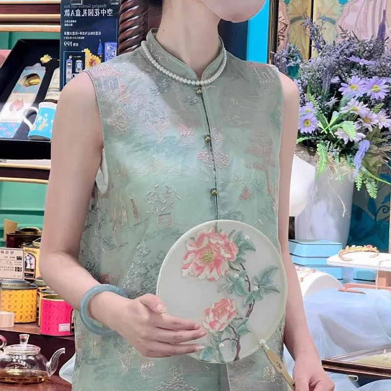 衣都精品- 2023新款民族風繡花旗袍款馬甲上衣