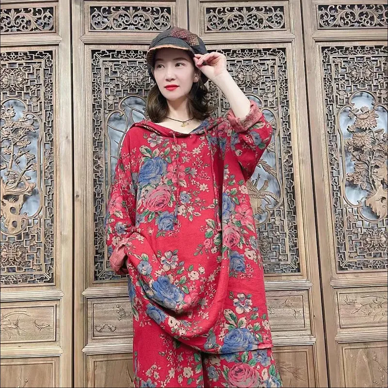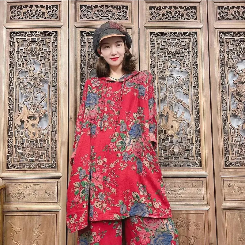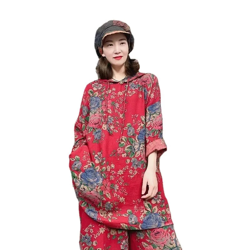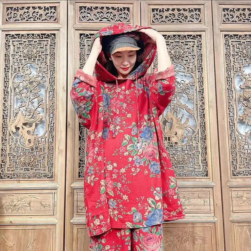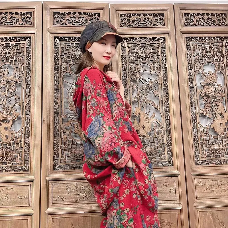 衣都精品- 2023新款民族風東北大花連帽雙層長款上衣