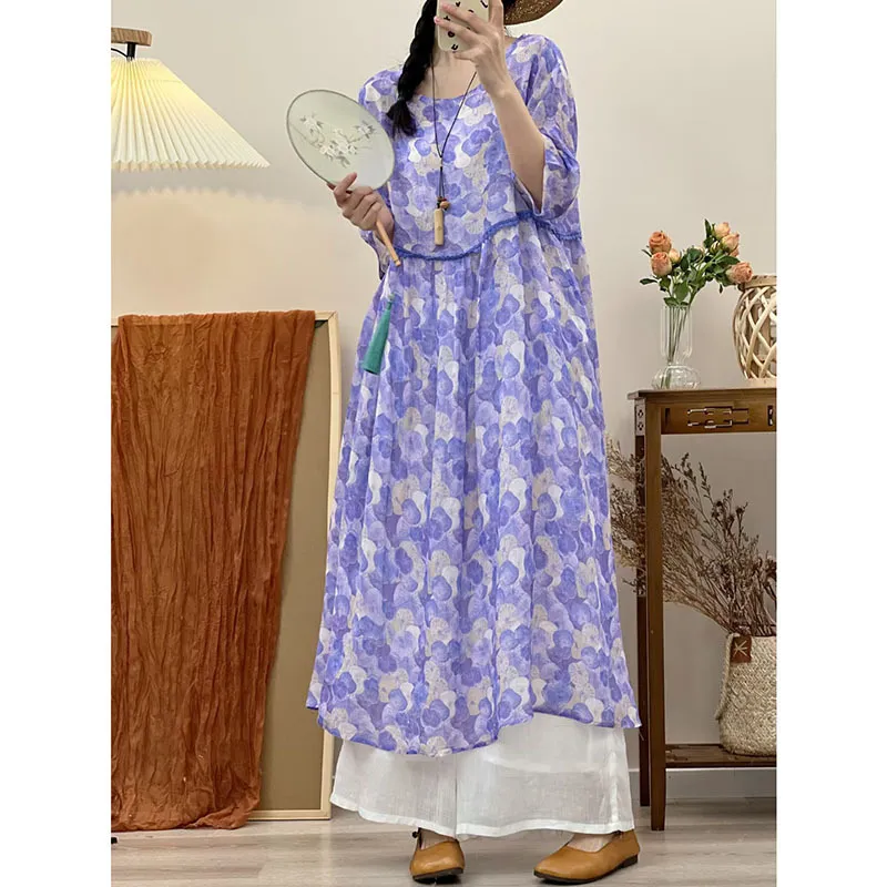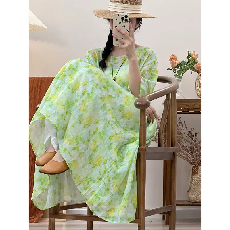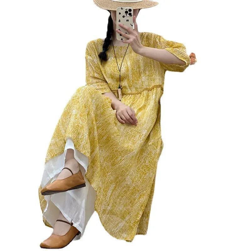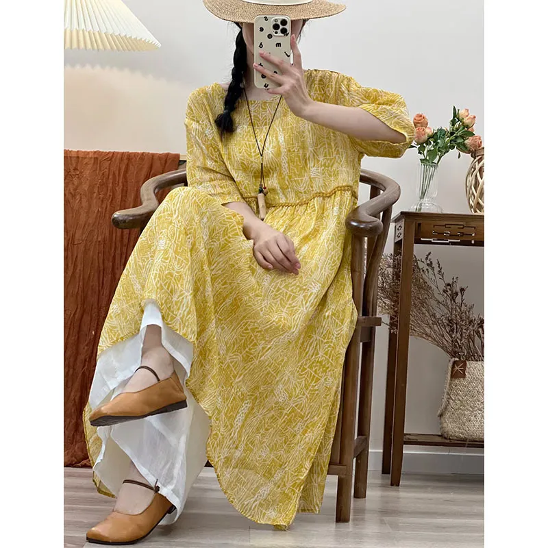 衣都精品- 2023新款圓領套頭五分袖寬鬆連衣裙
