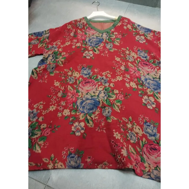 衣都精品- 2023新款復古撞色拼接V領套頭中長款上衣