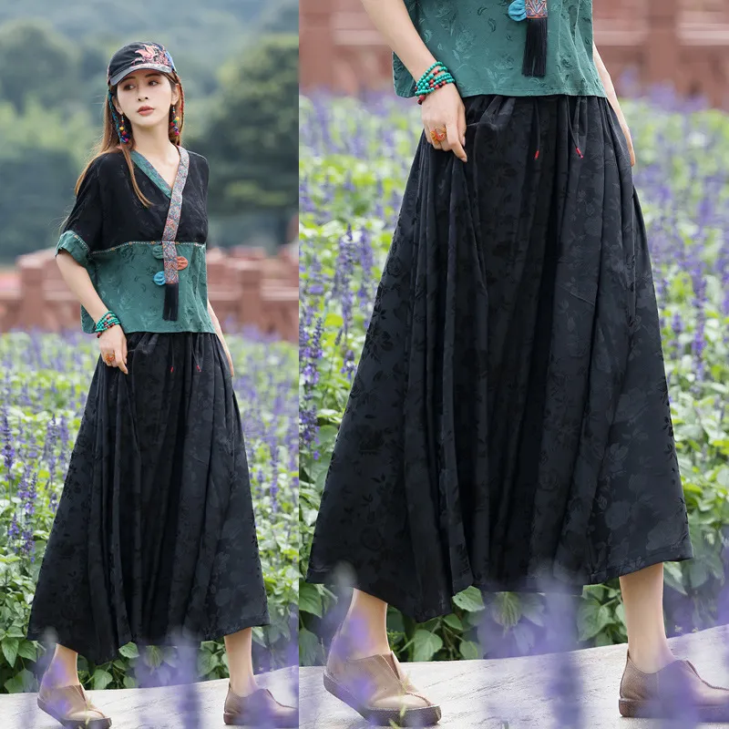衣都精品- 2023新款民族風提花鬆緊腰大裙擺顯瘦半身裙