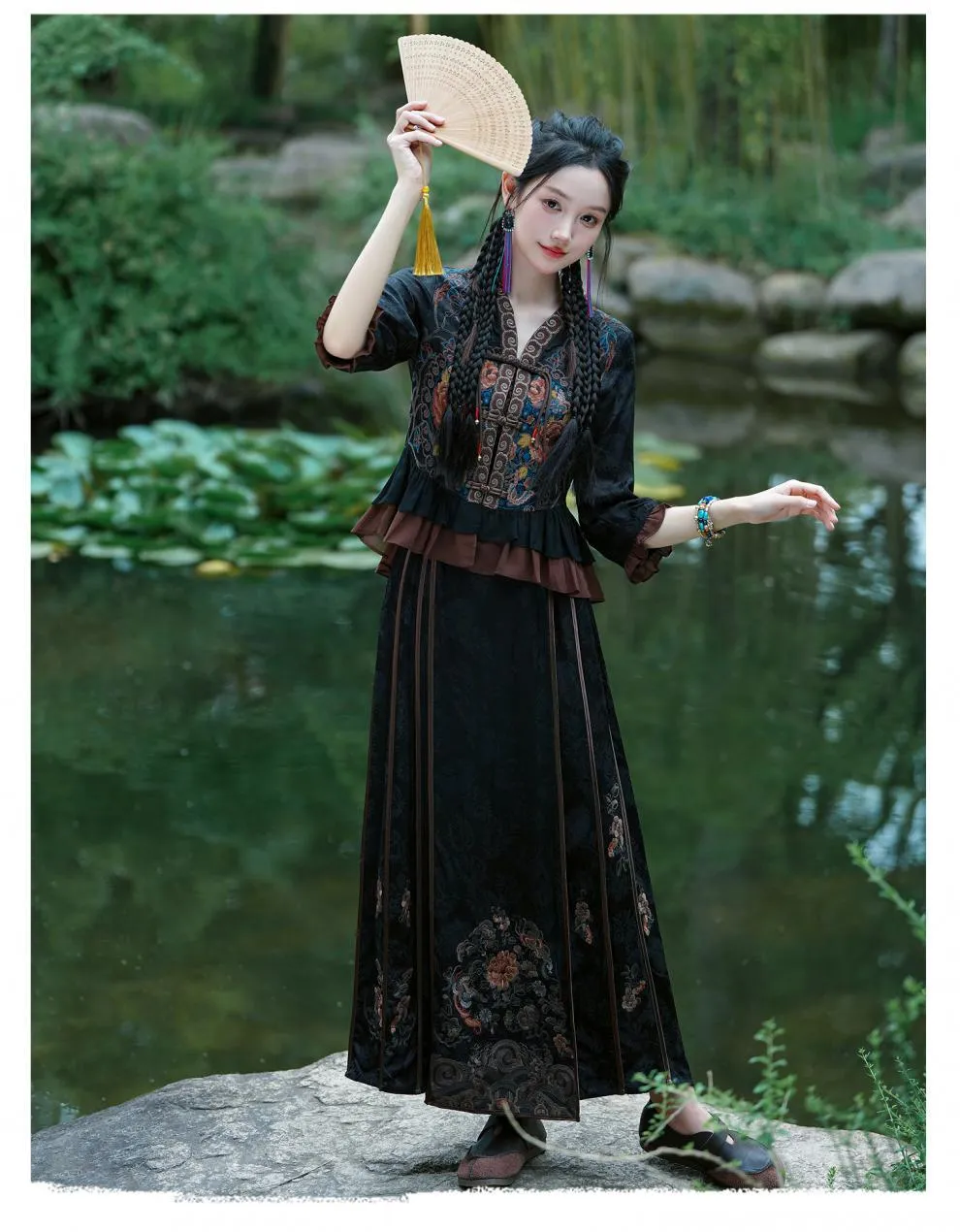 衣都精品- 2023新款民族風提花重工刺繡馬面裙