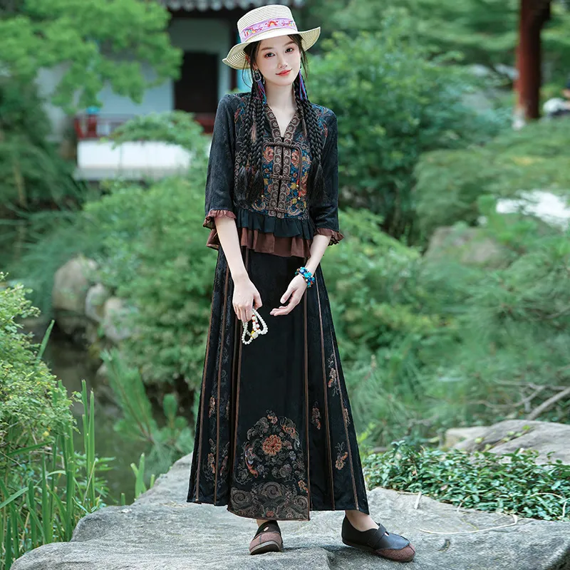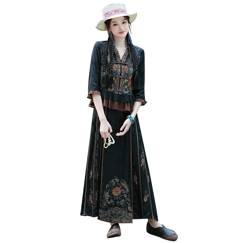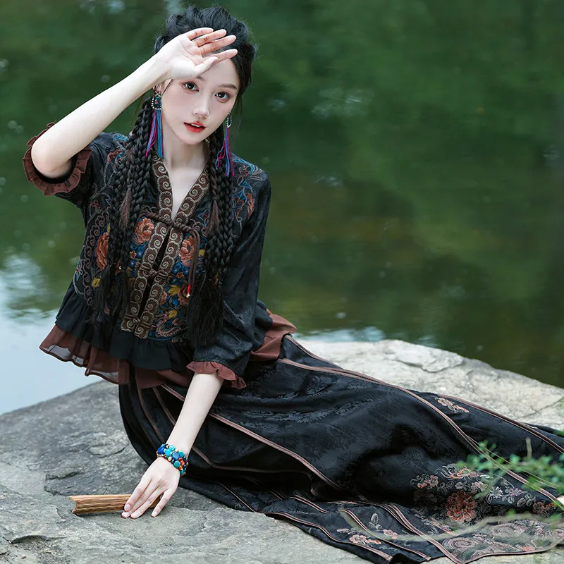 衣都精品- 2023新款民族風提花重工刺繡馬面裙