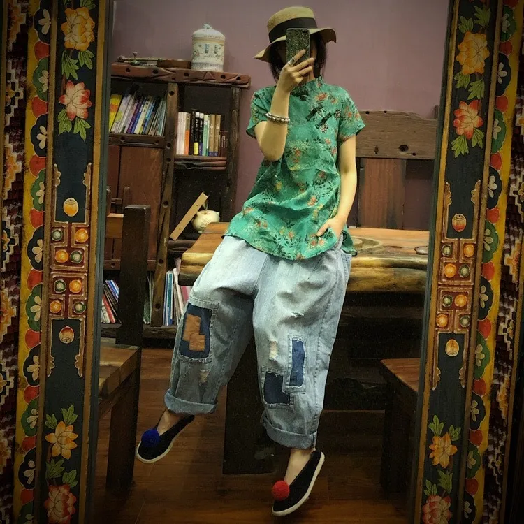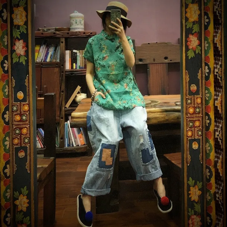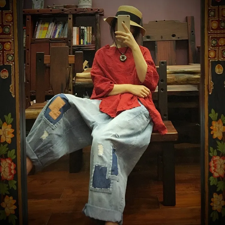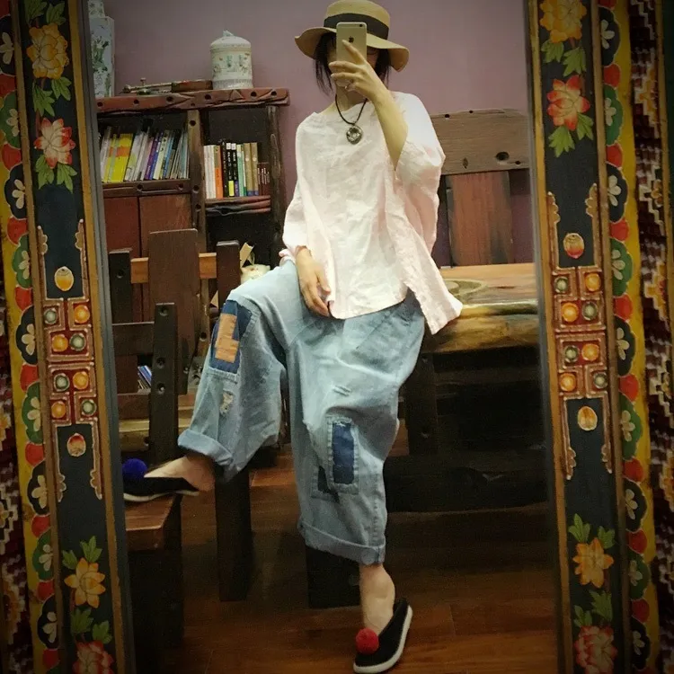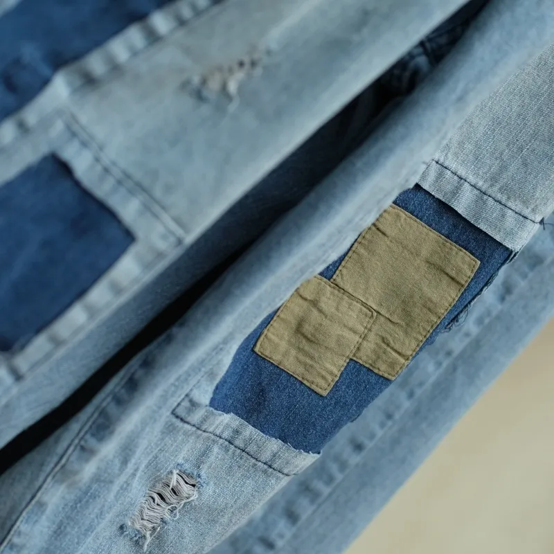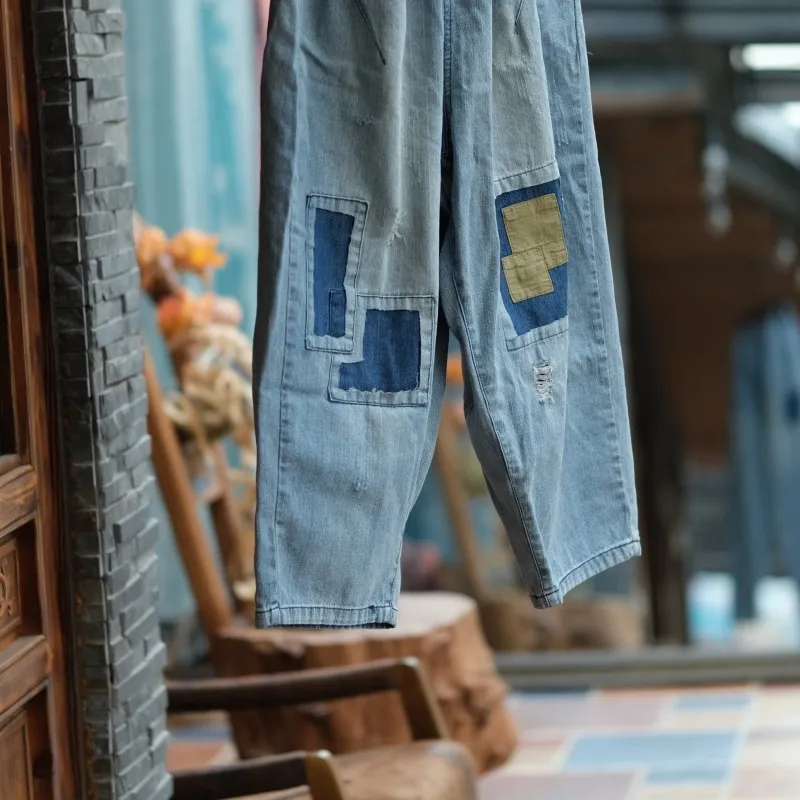 衣都精品- 2023新款落古泥水洗牛仔撞色寬鬆九分褲