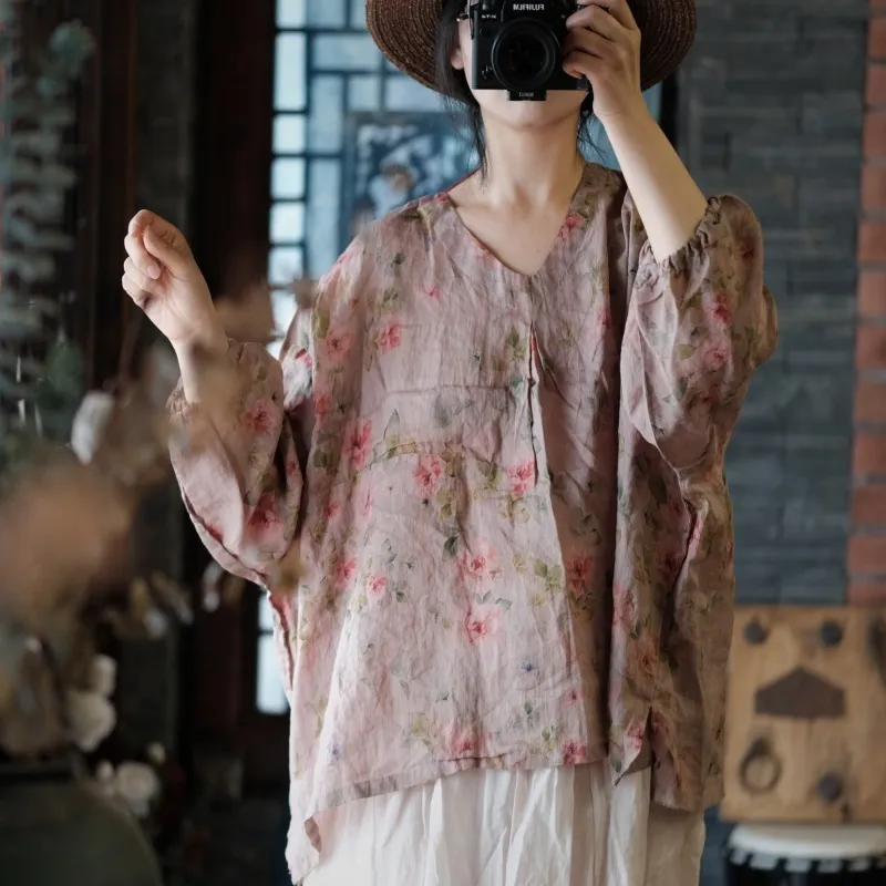 衣都精品- 2023新款復古舊感舒適寬鬆繫帶上衣